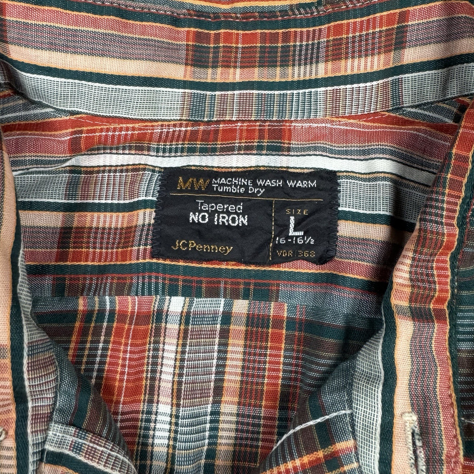 как выглядит Vintage 60s Penneys Poly Cotton Plaid Button Up Shirt Mens Size Large фото
