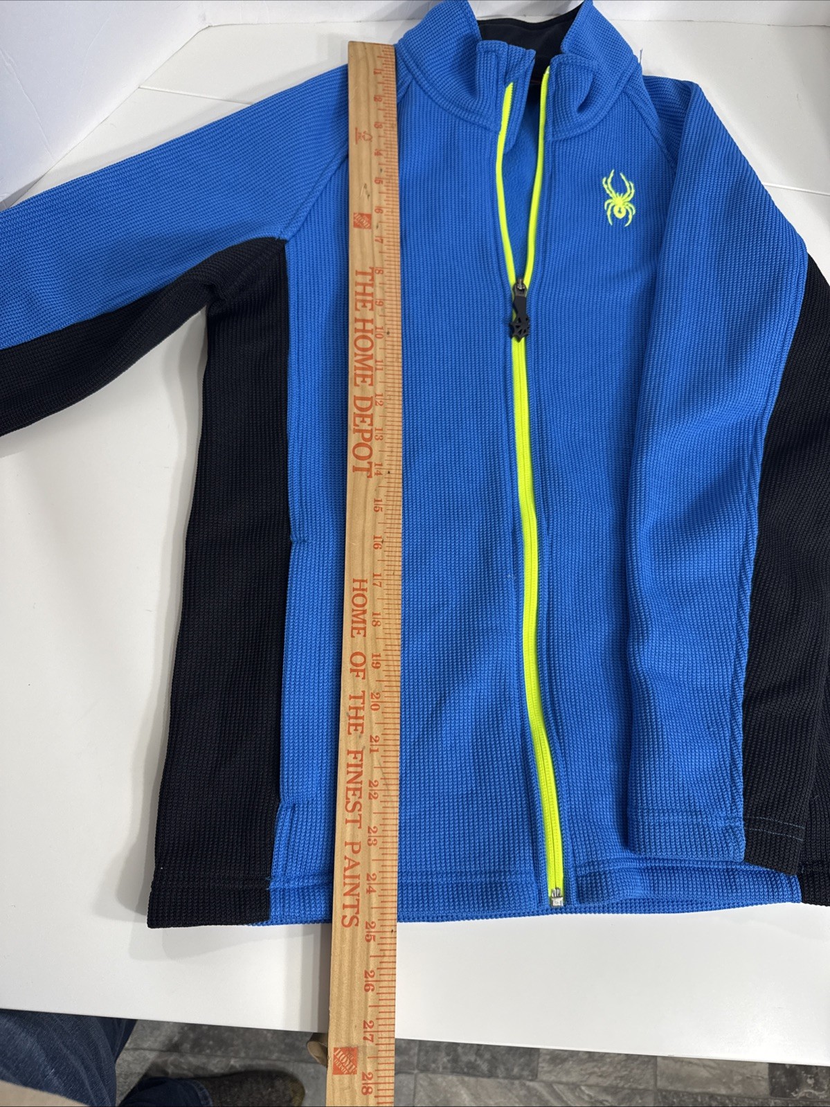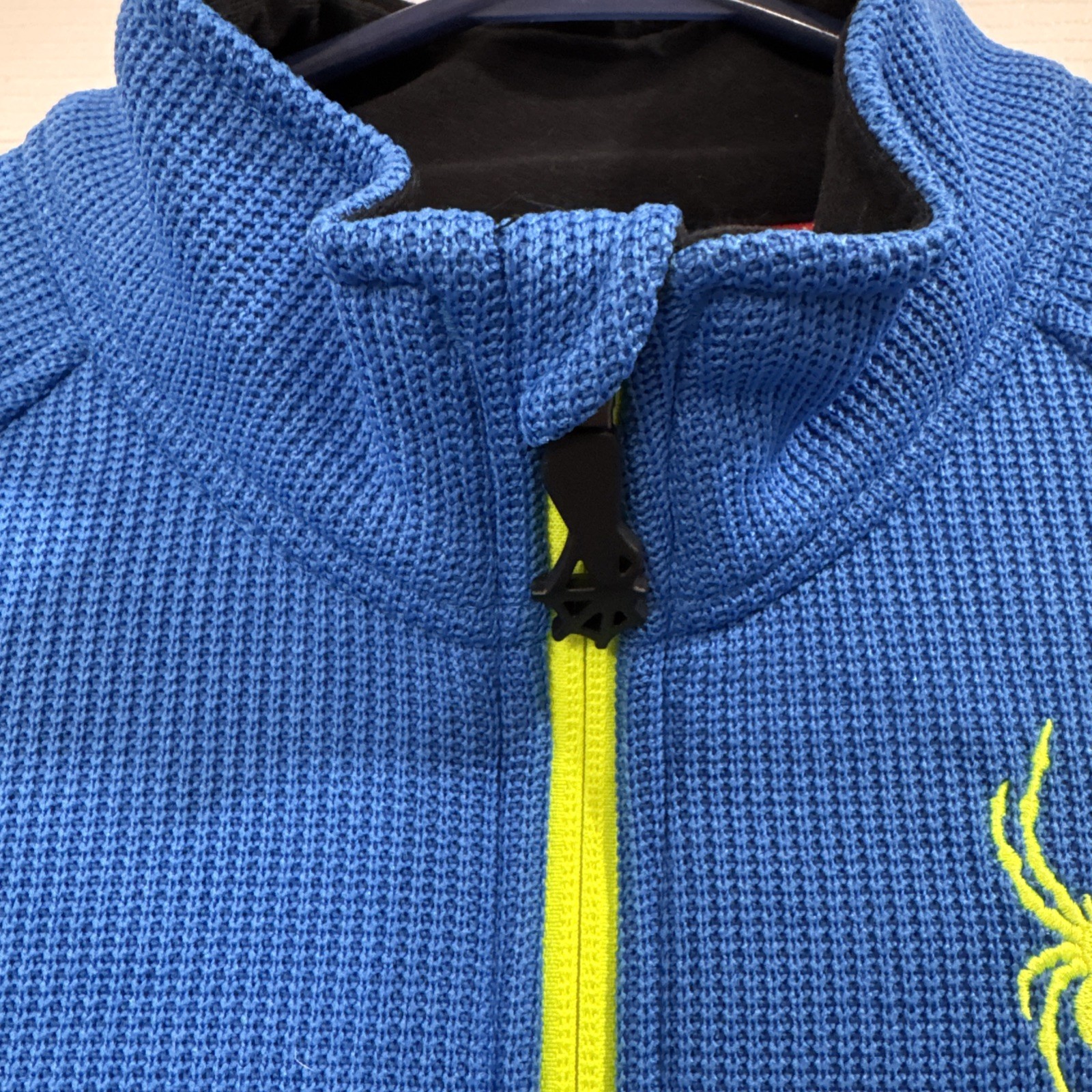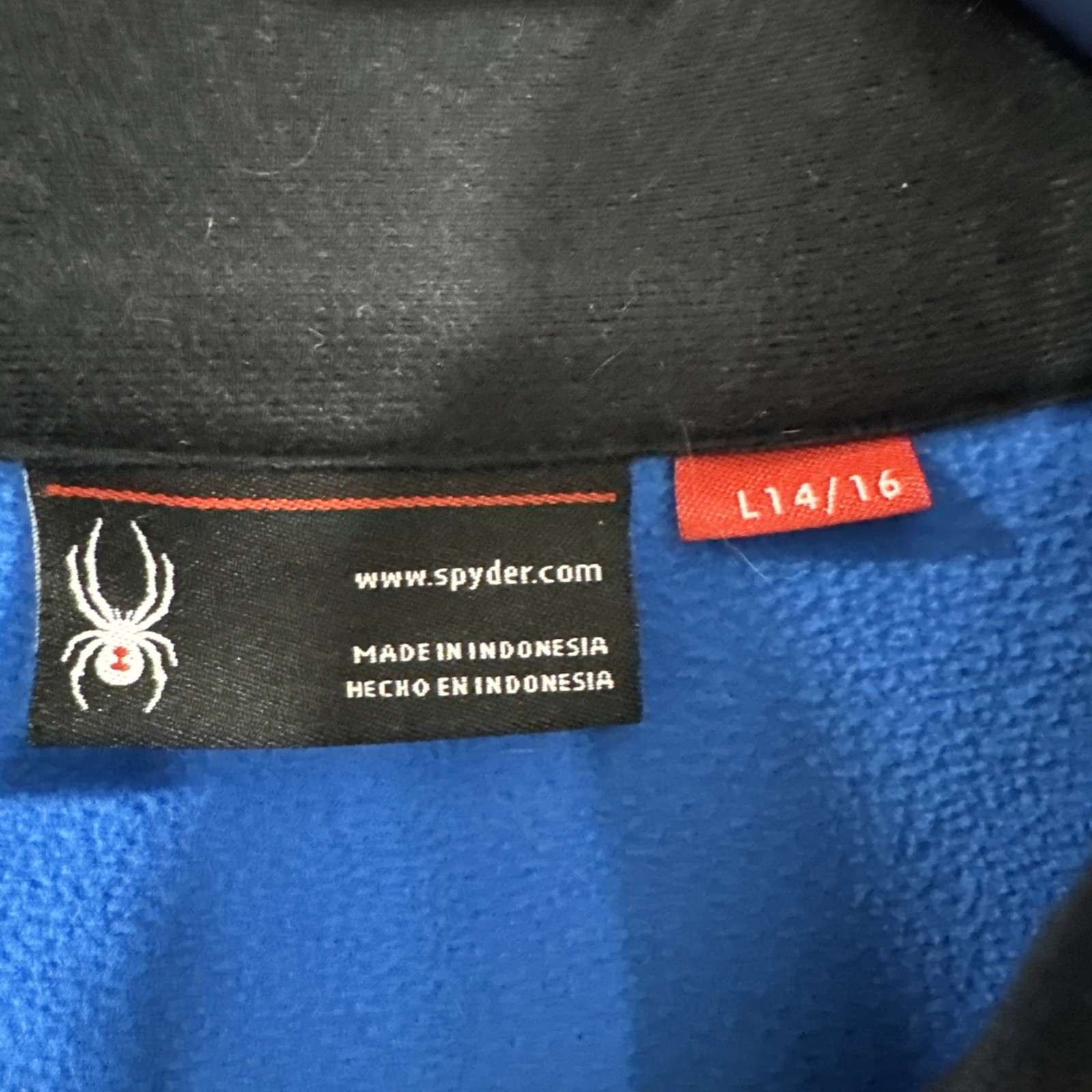 как выглядит Spyder Youth L 14/16 Blue Full Zip Fleece Jacket Neon Logo Boys Girls EUC фото