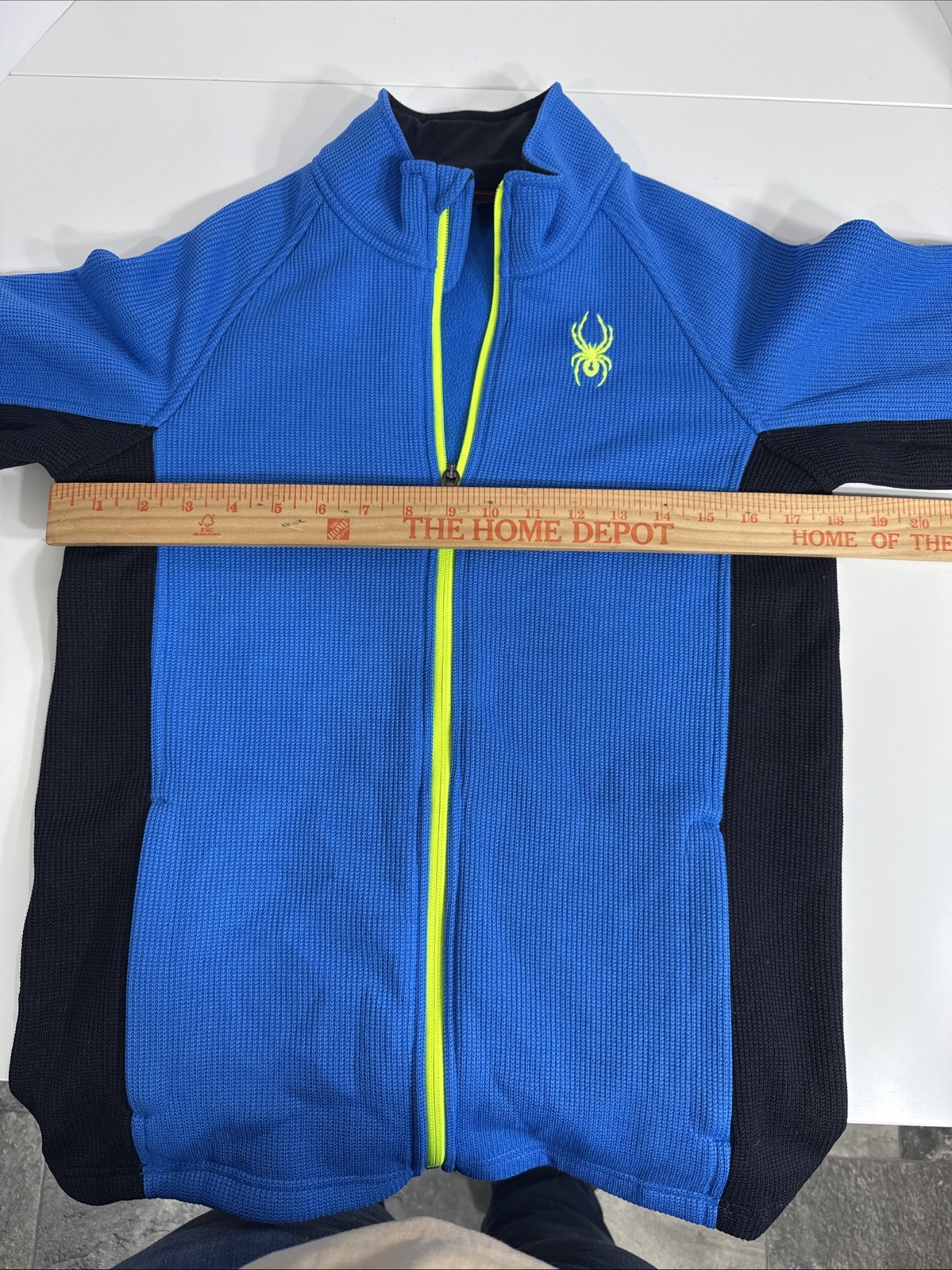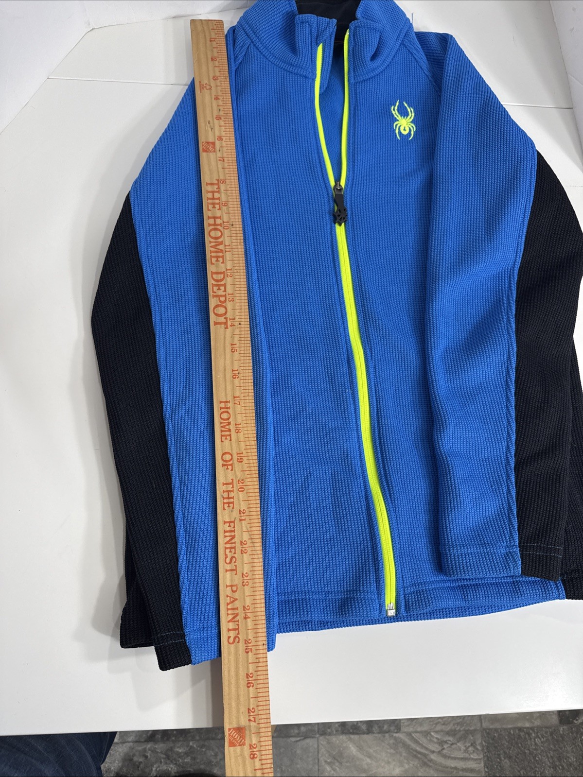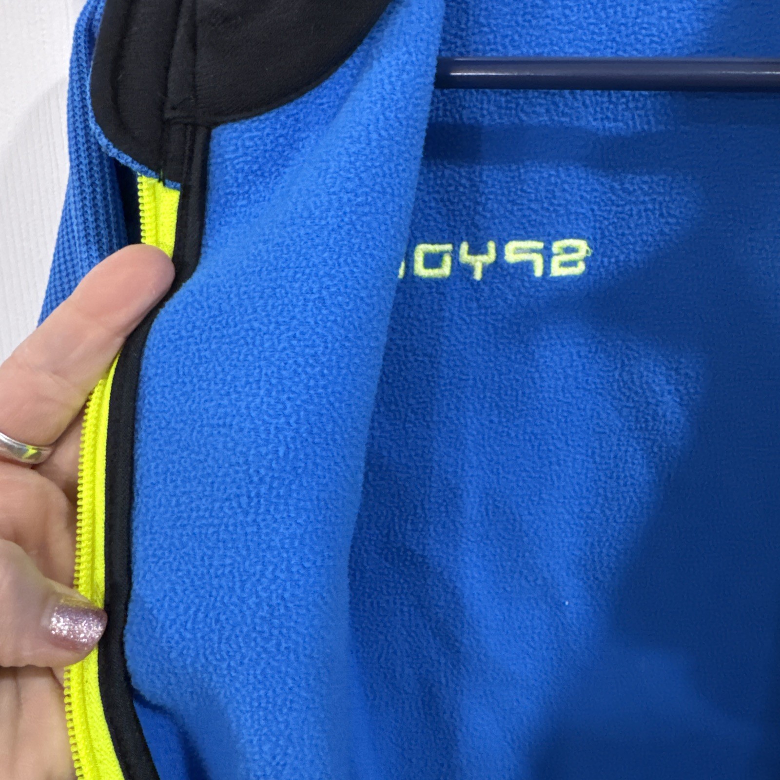 как выглядит Spyder Youth L 14/16 Blue Full Zip Fleece Jacket Neon Logo Boys Girls EUC фото