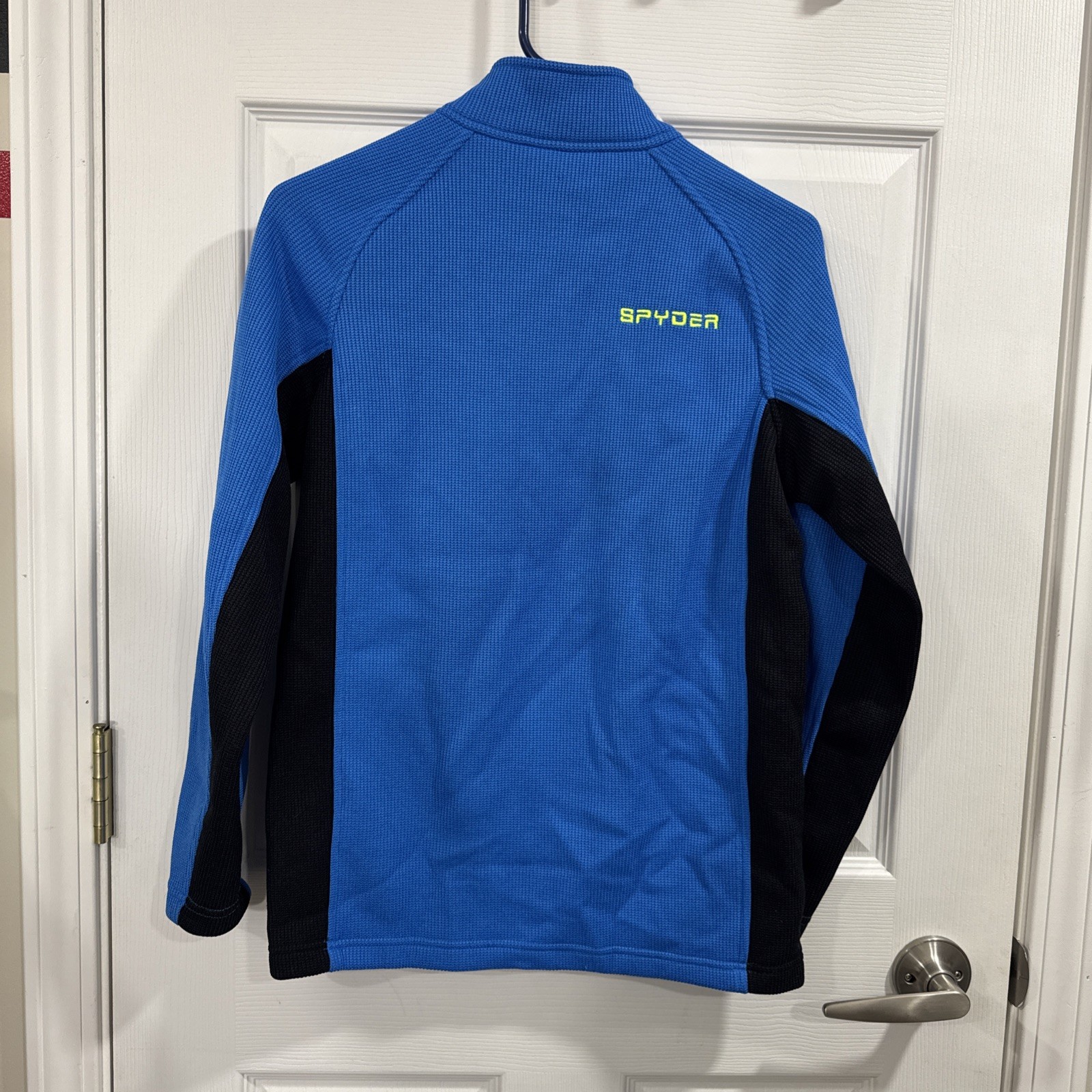 Spyder Youth L 14/16 Blue Full Zip Fleece Jacket Neon Logo Boys Girls EUC