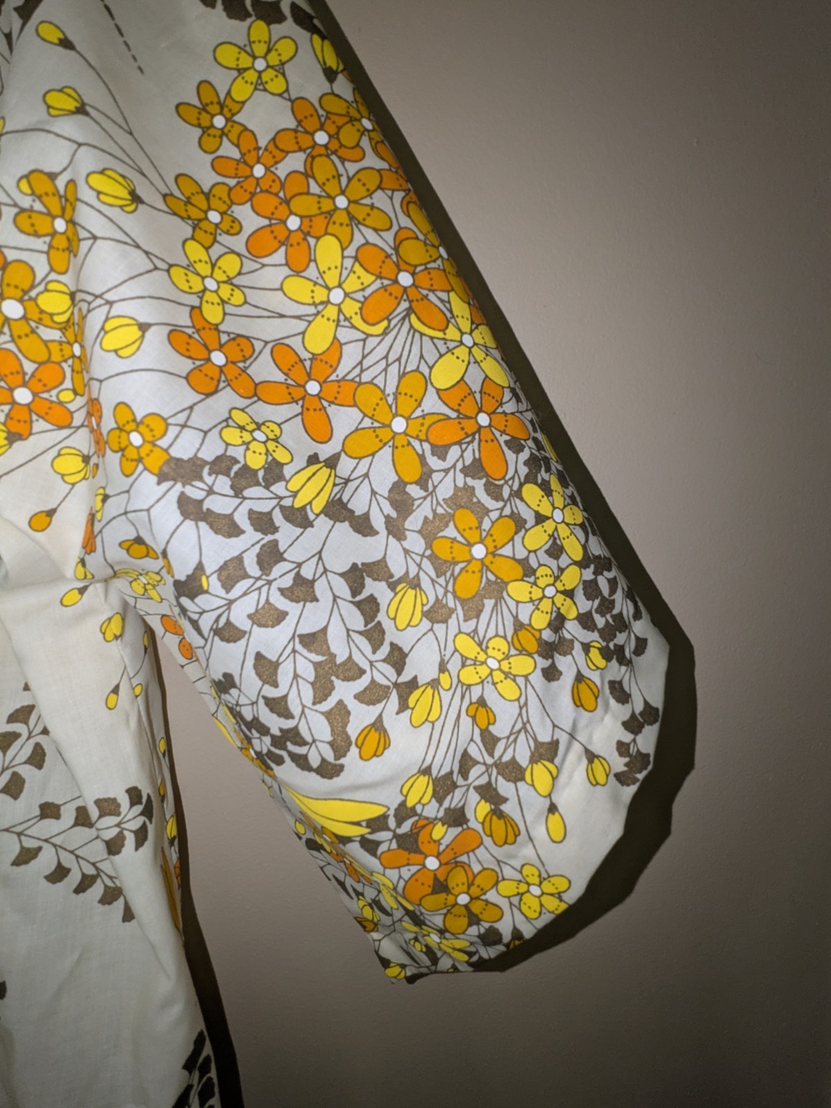 как выглядит Vtg Alfred Shaheen Ivory Floral Maxi Caftan Mumu Mynah Bird Hawaiian Dragonfly фото