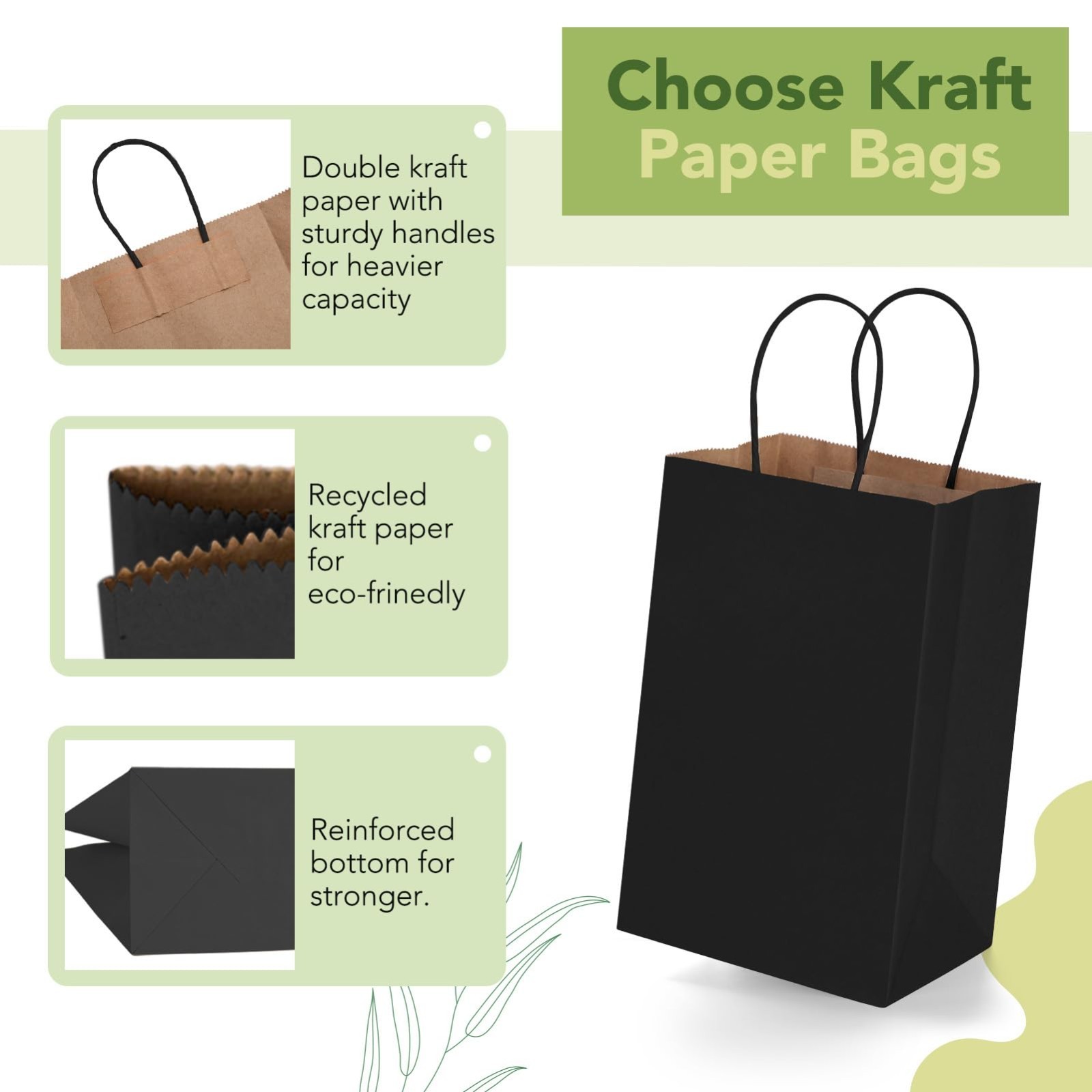 100- Pack Black Kraft Paper Gift Bags with Handles Reusable, Durable Stylish