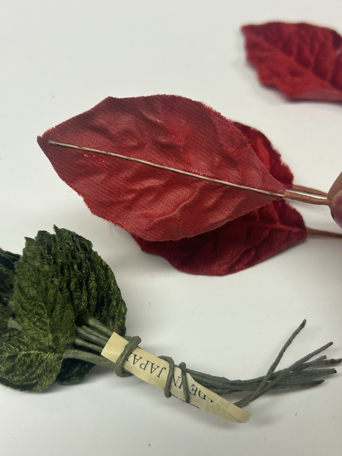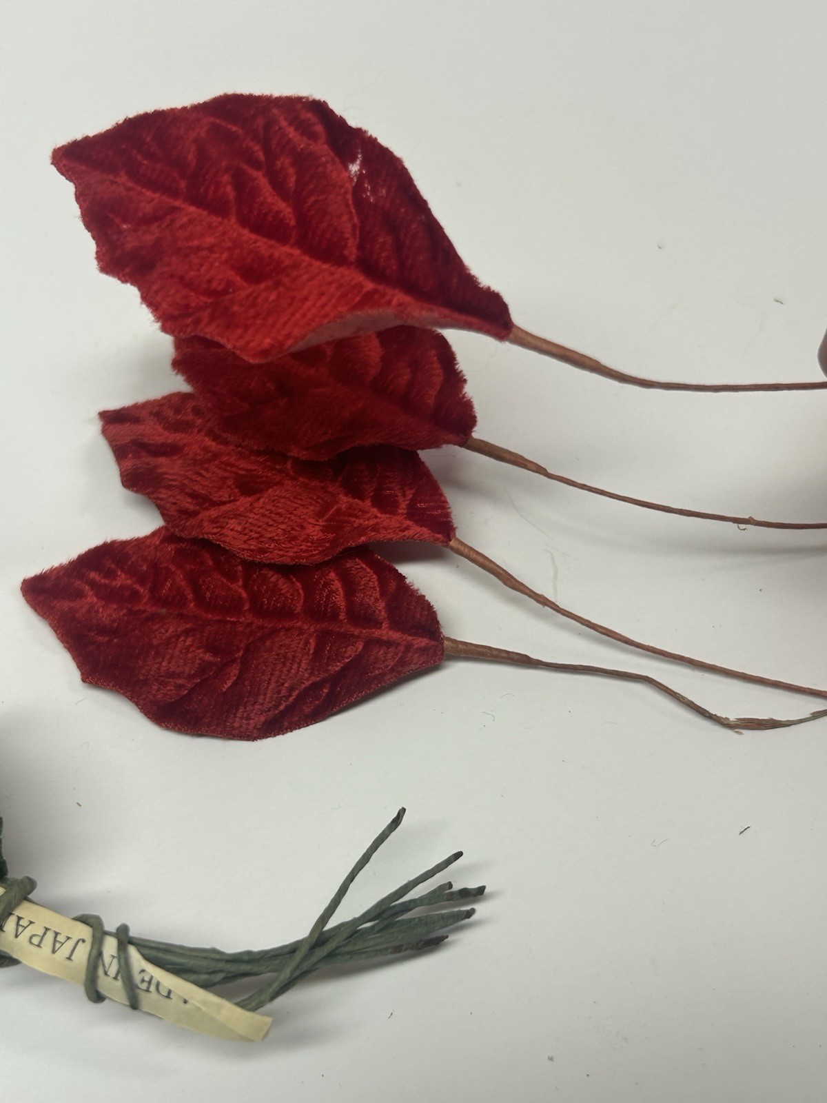 как выглядит Vintage Green and Red 2 Velvet Leaves Bunch Millinery Artificial Leaf фото