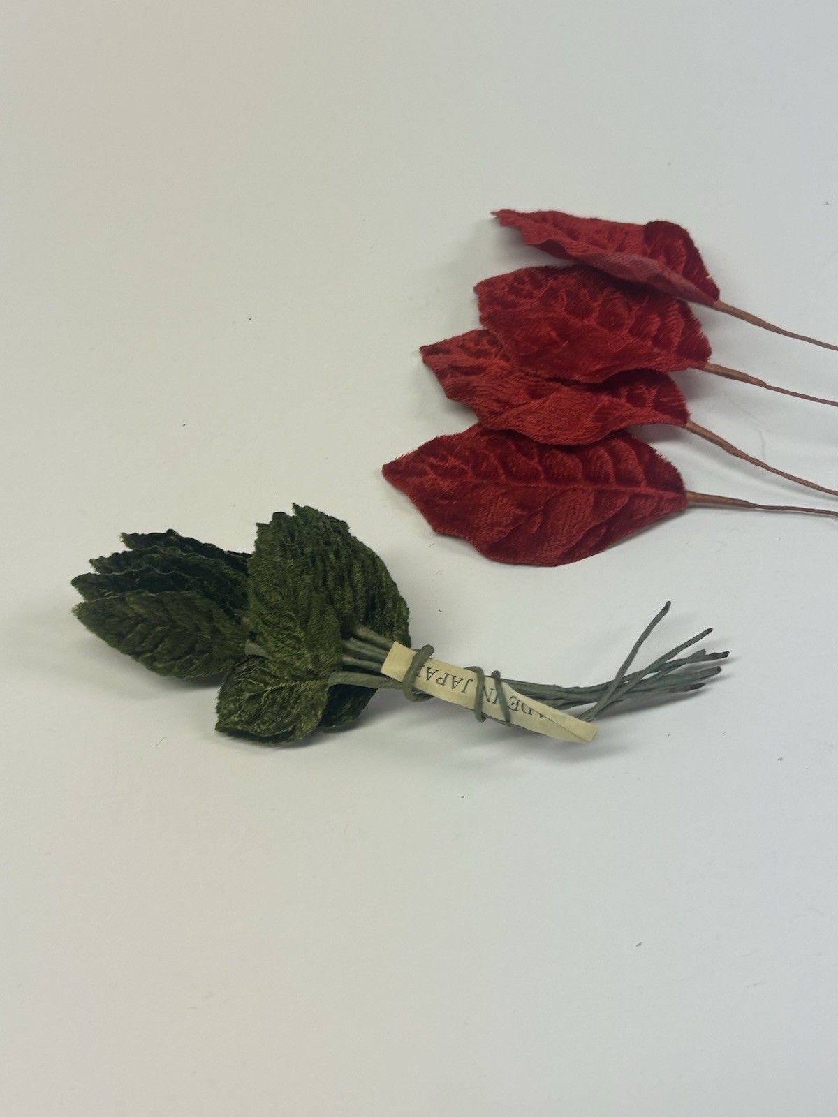 Vintage Green and Red 2 Velvet Leaves Bunch Millinery Artificial Leaf