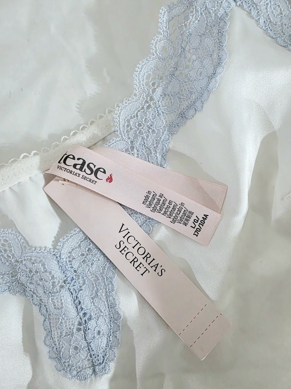 как выглядит Victoria Secret Tease Satin Lace-Trim Mini Slip Dress New фото