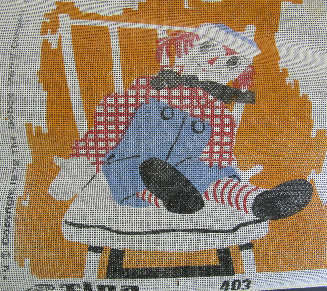 как выглядит Raggedy Andy 18" x 18" Tina of California vtg Color Needlepoint Canvas Only 403 фото