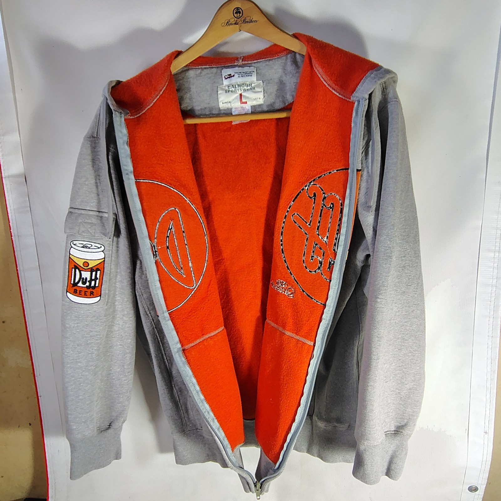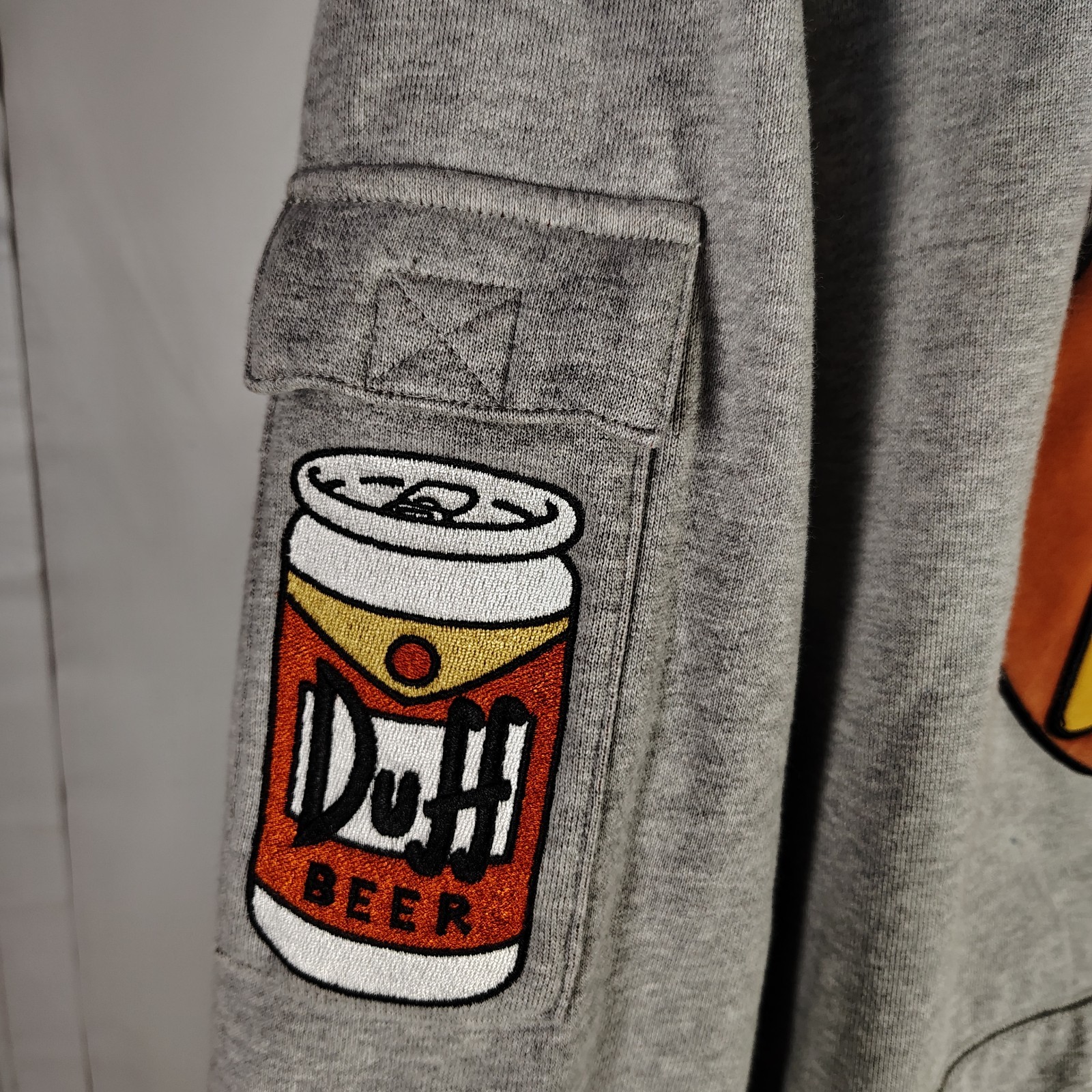 The Simpson Duff Beer Full Zip Hoodie Men's Large Gray Embroidred