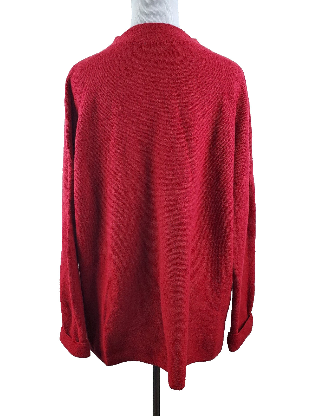 J Jill Sweater Womens Large Red Knit Pullover Oversized TEXTURED Mock Neck