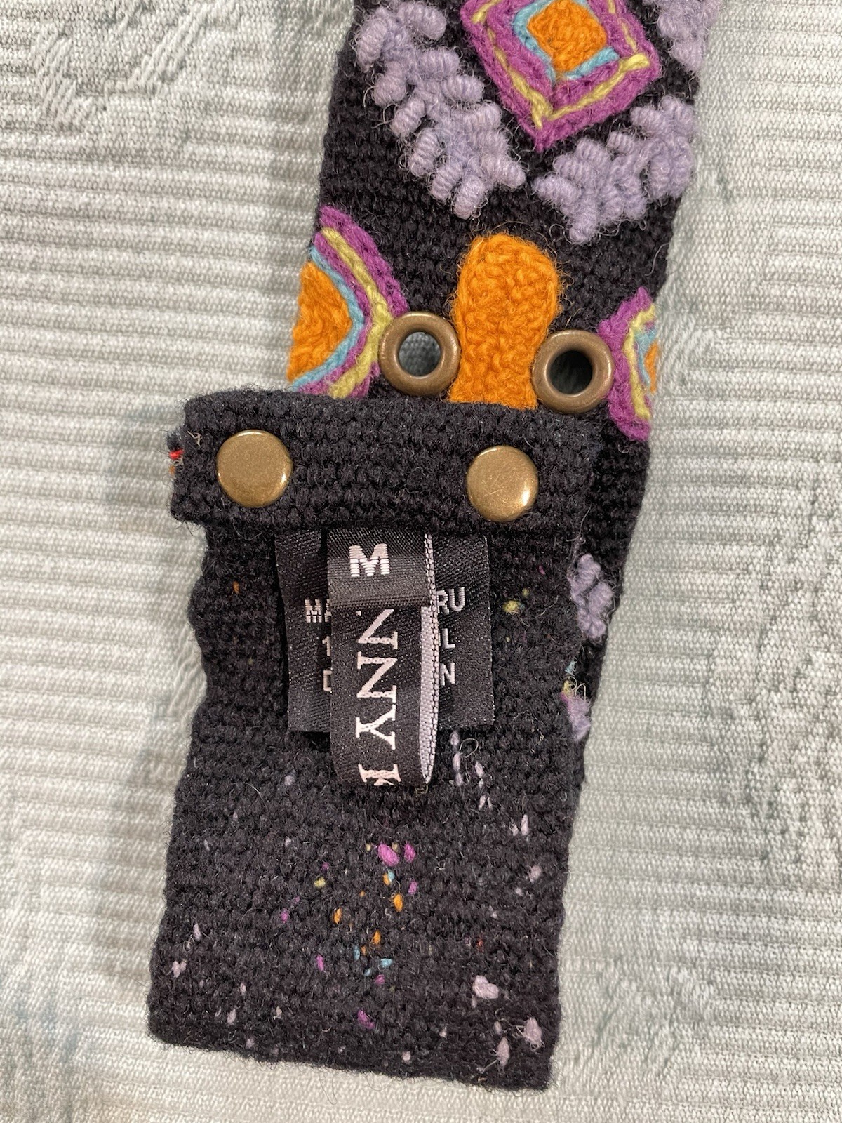 как выглядит New Jenny Krauss Black Nested Embroidered Wool Belt Handmade Peru Medium фото