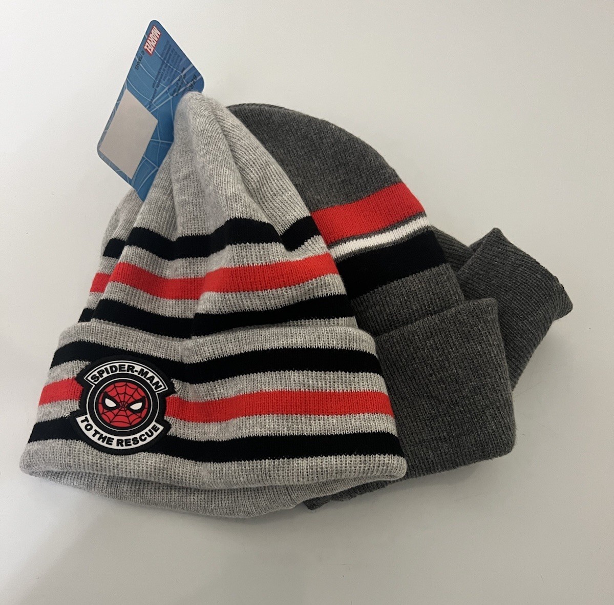 как выглядит Spiderman Beanie Hat By Marvel One Size Unisex 1 Gray 1 Charcoal Spiderman Logo фото