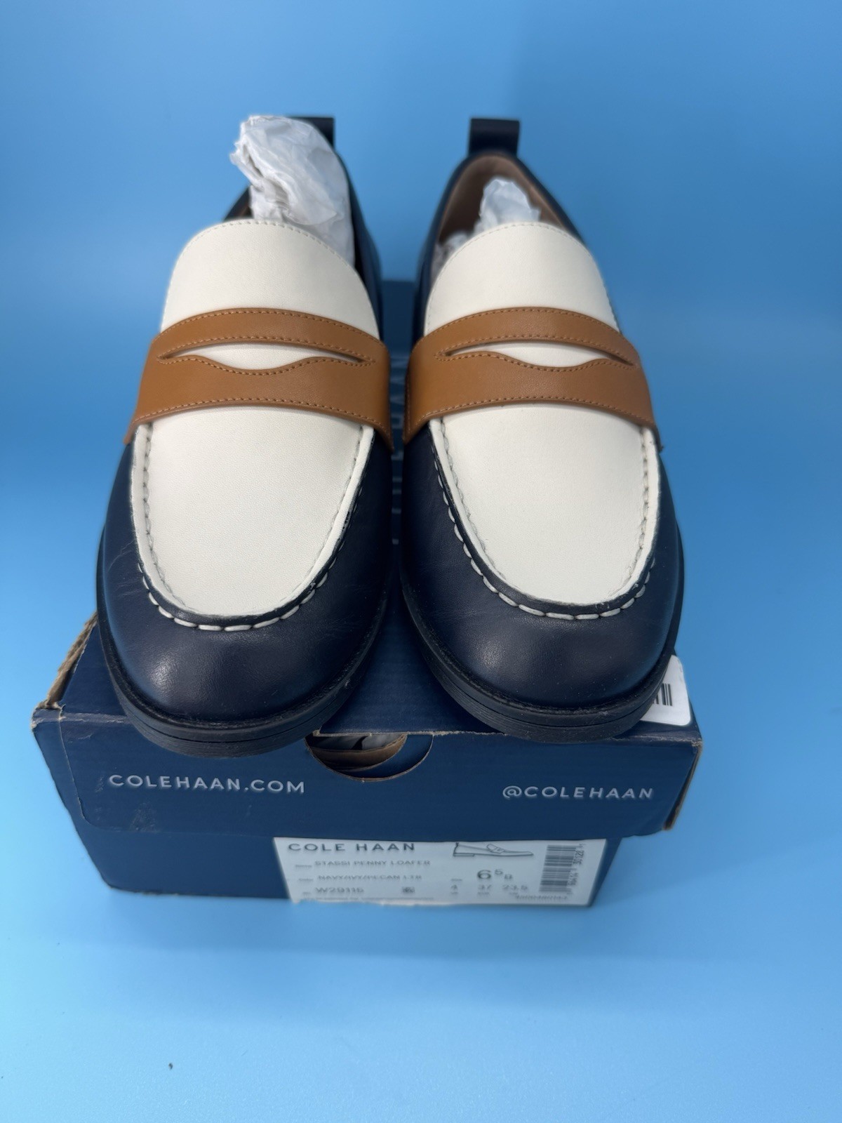 Cole Haan Womens Stassi Penny Loafers Navy Ivy Pecan Leather Slip On Size 6.5 B