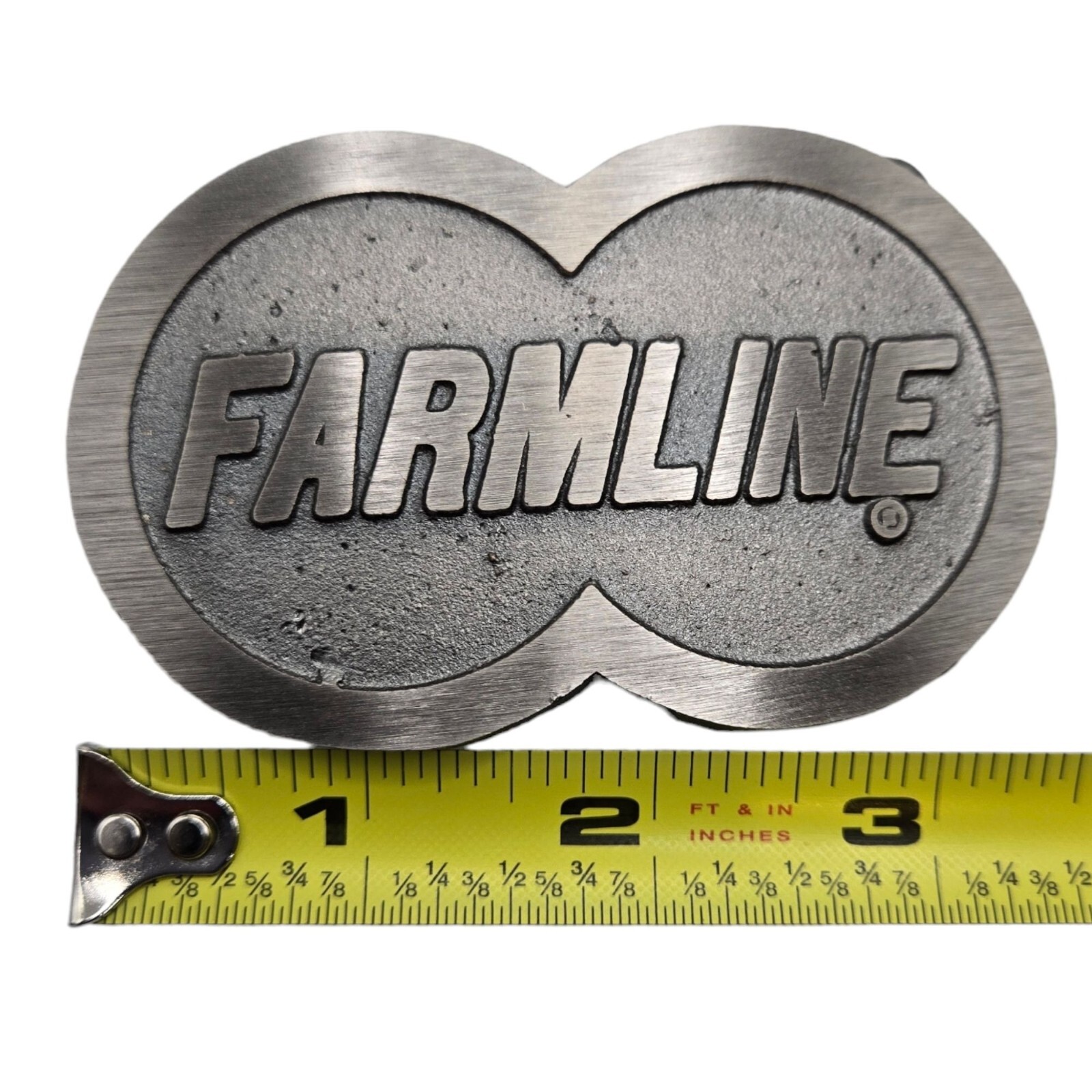 как выглядит Vintage Farmline Belt Buckle 1980s Farm Line Advertising Cowboy Farmer фото