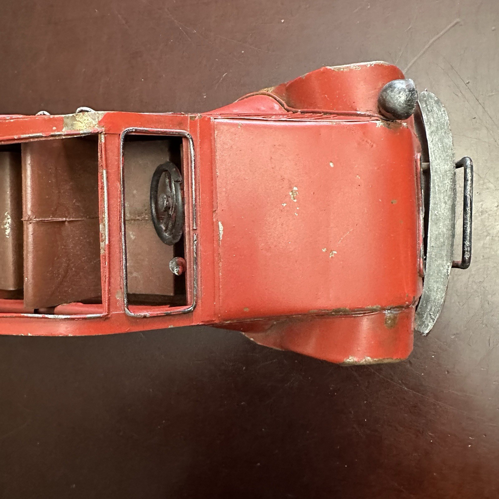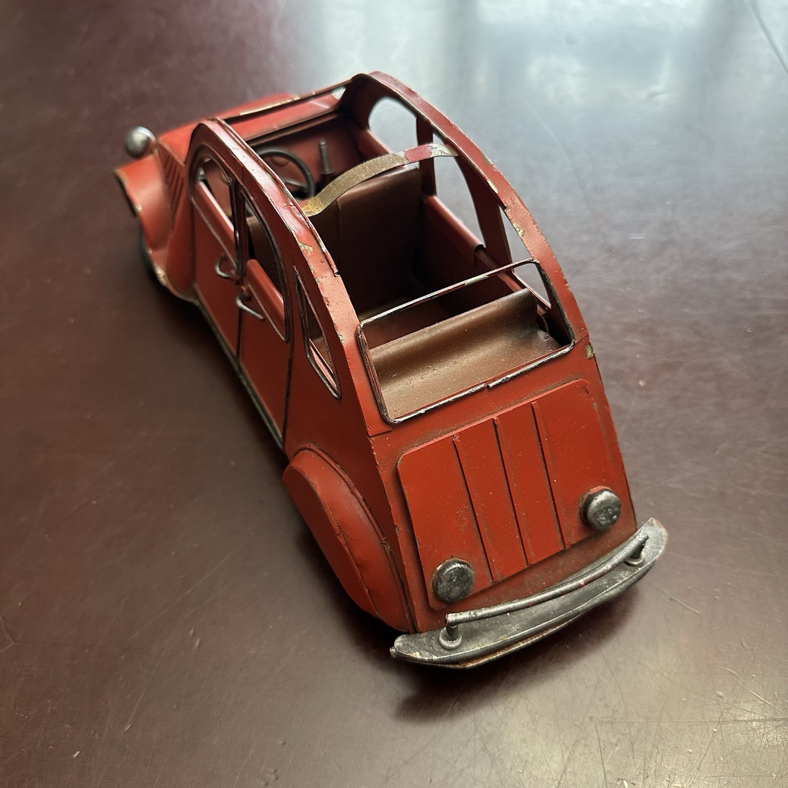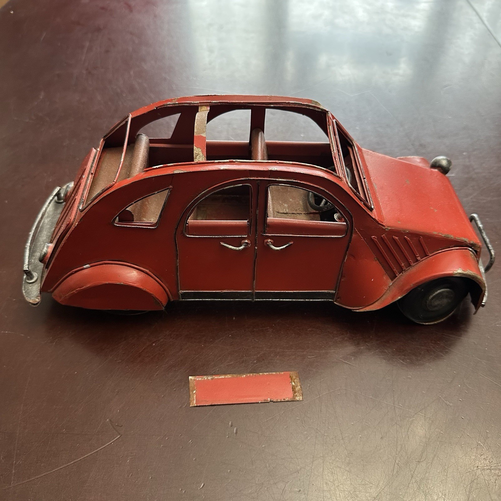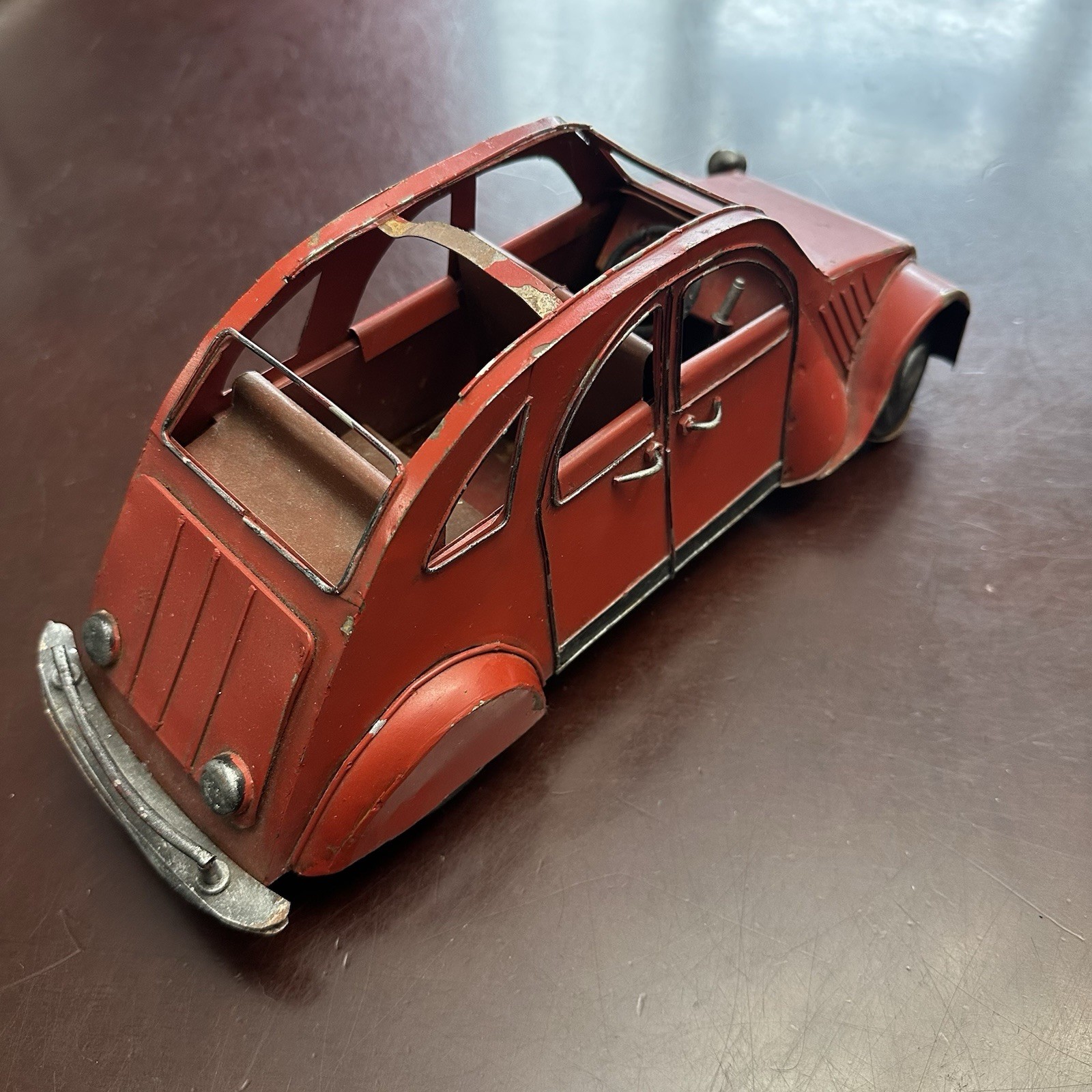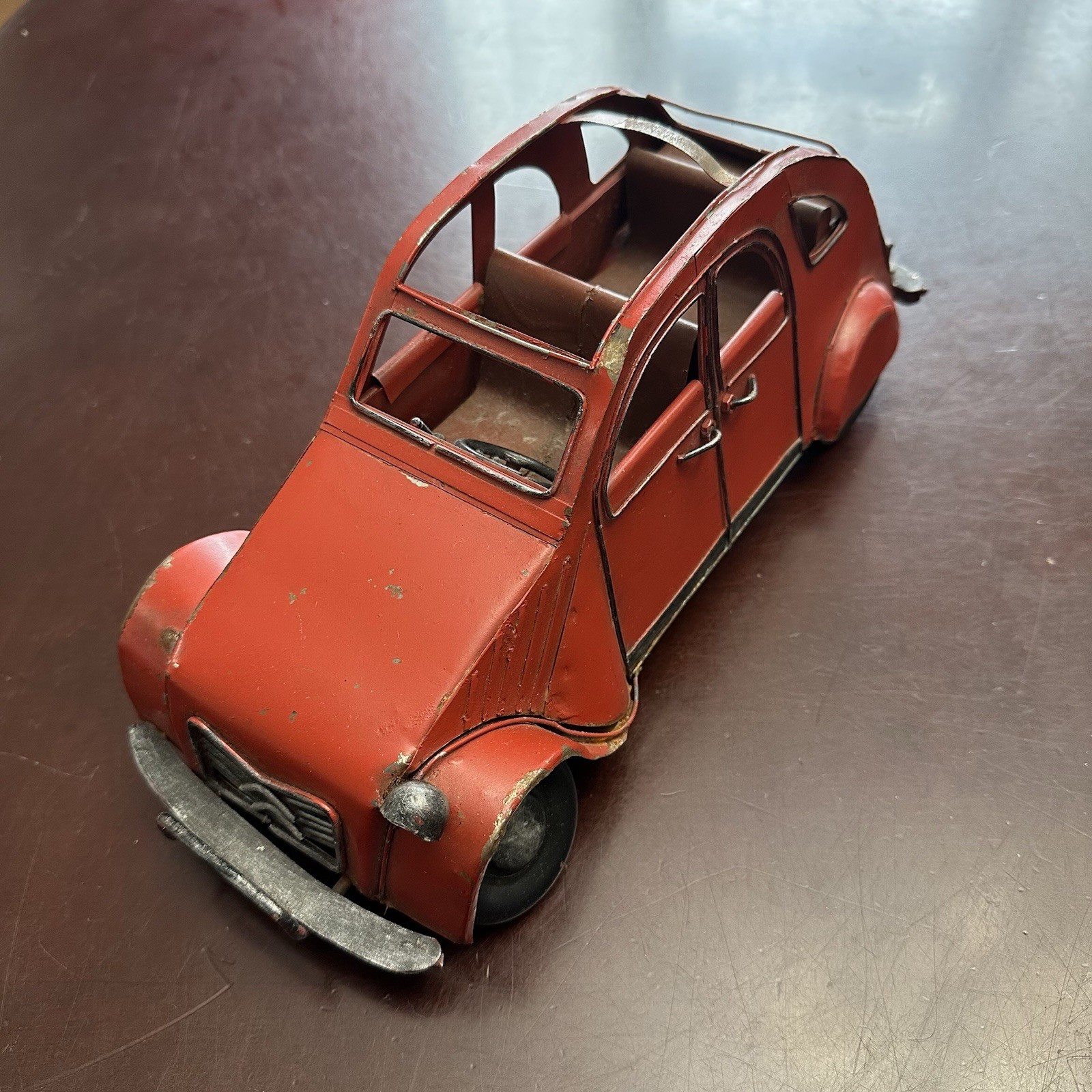 Rare Antique CITROEN 2CV Red Big Size Tin Car Toy 1950's French - Bent Wheels