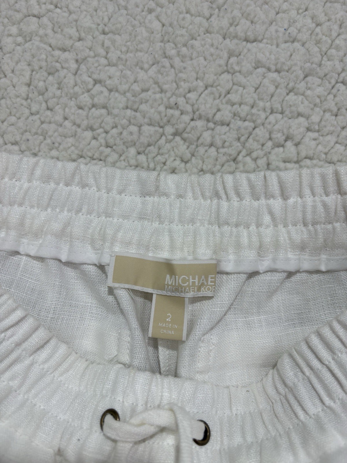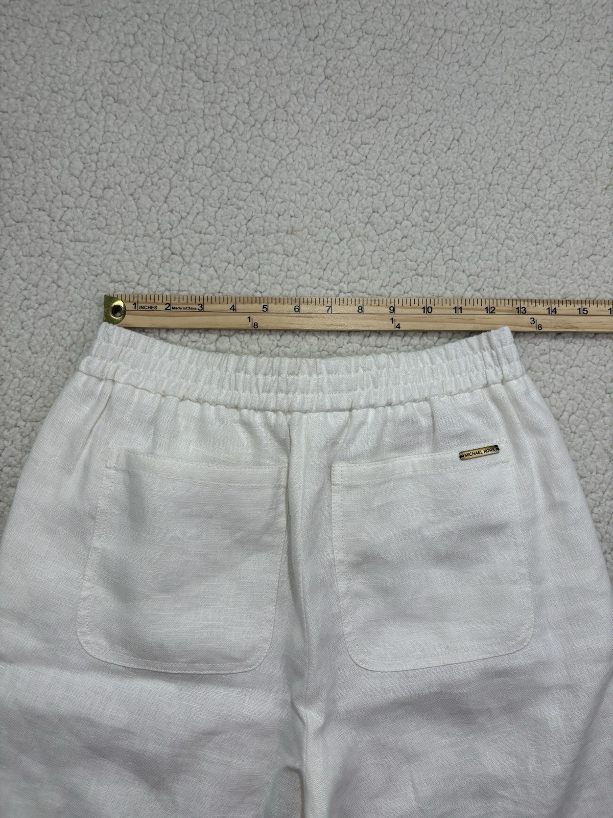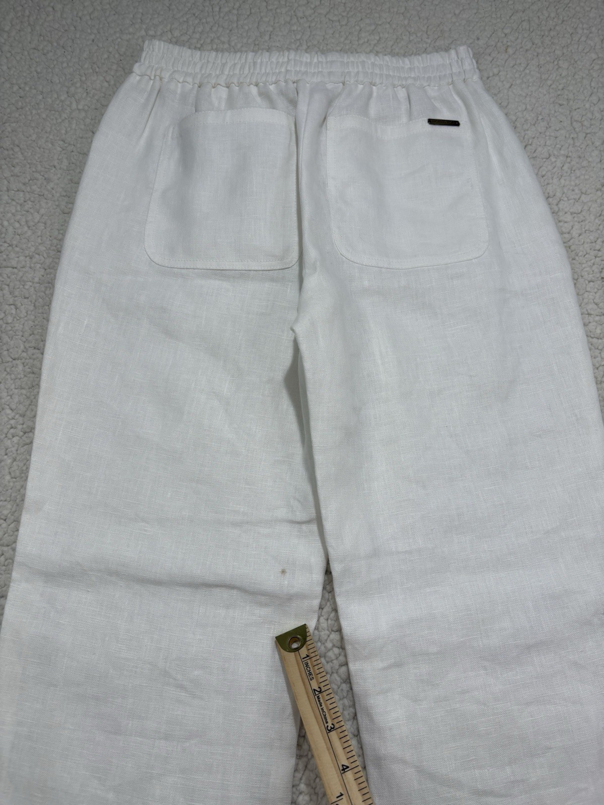 Michael Kors White 100 Linen Pants Slacks Straight Leg Womens Sz 2 Drawstring