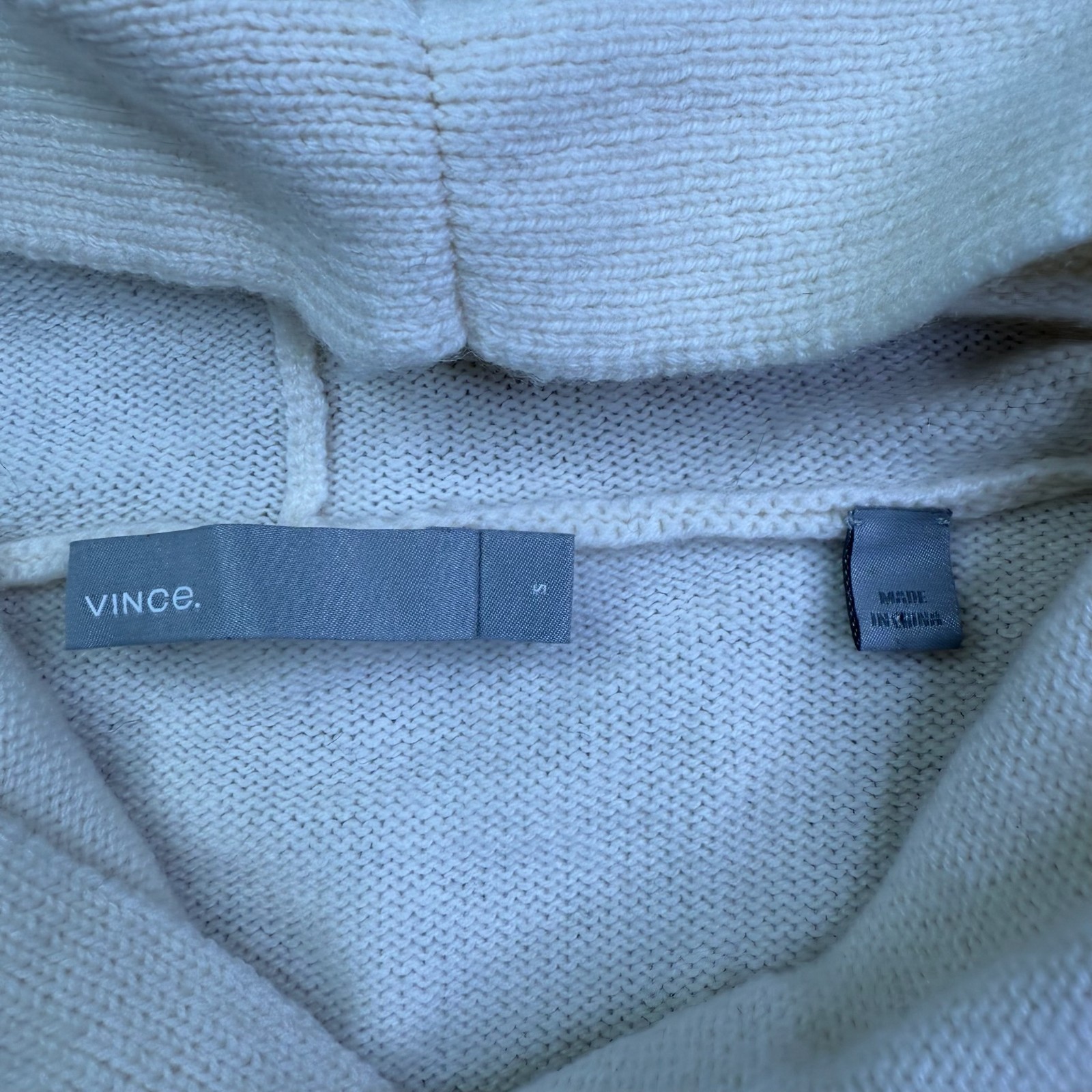 как выглядит Vince Womens Ivory Knit Cashmere Crossover Hooded Pullover Sweater Small фото