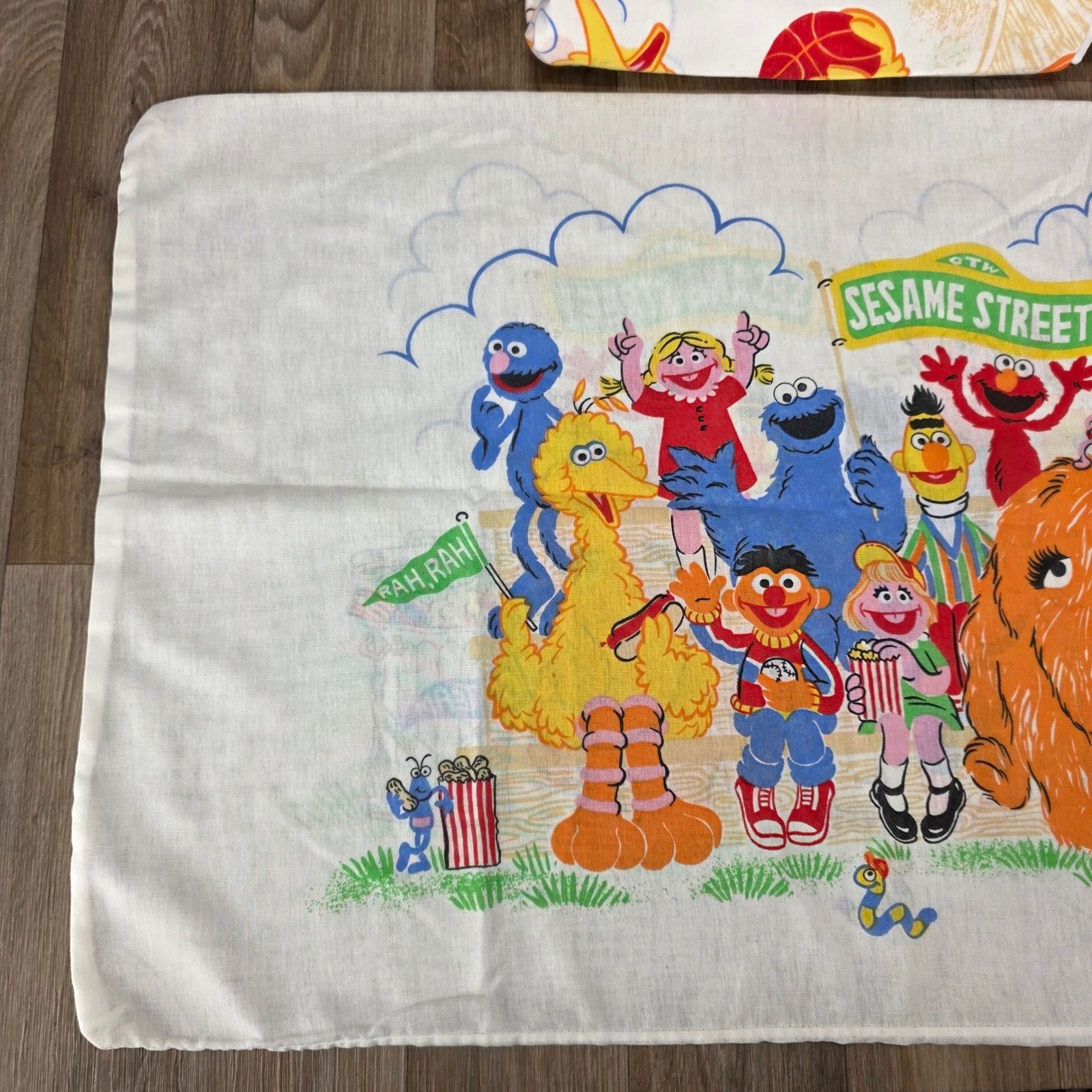 Vintage Sesame Street Pillowcase Flat Sheet Set 1984 Jim Henson Bedding