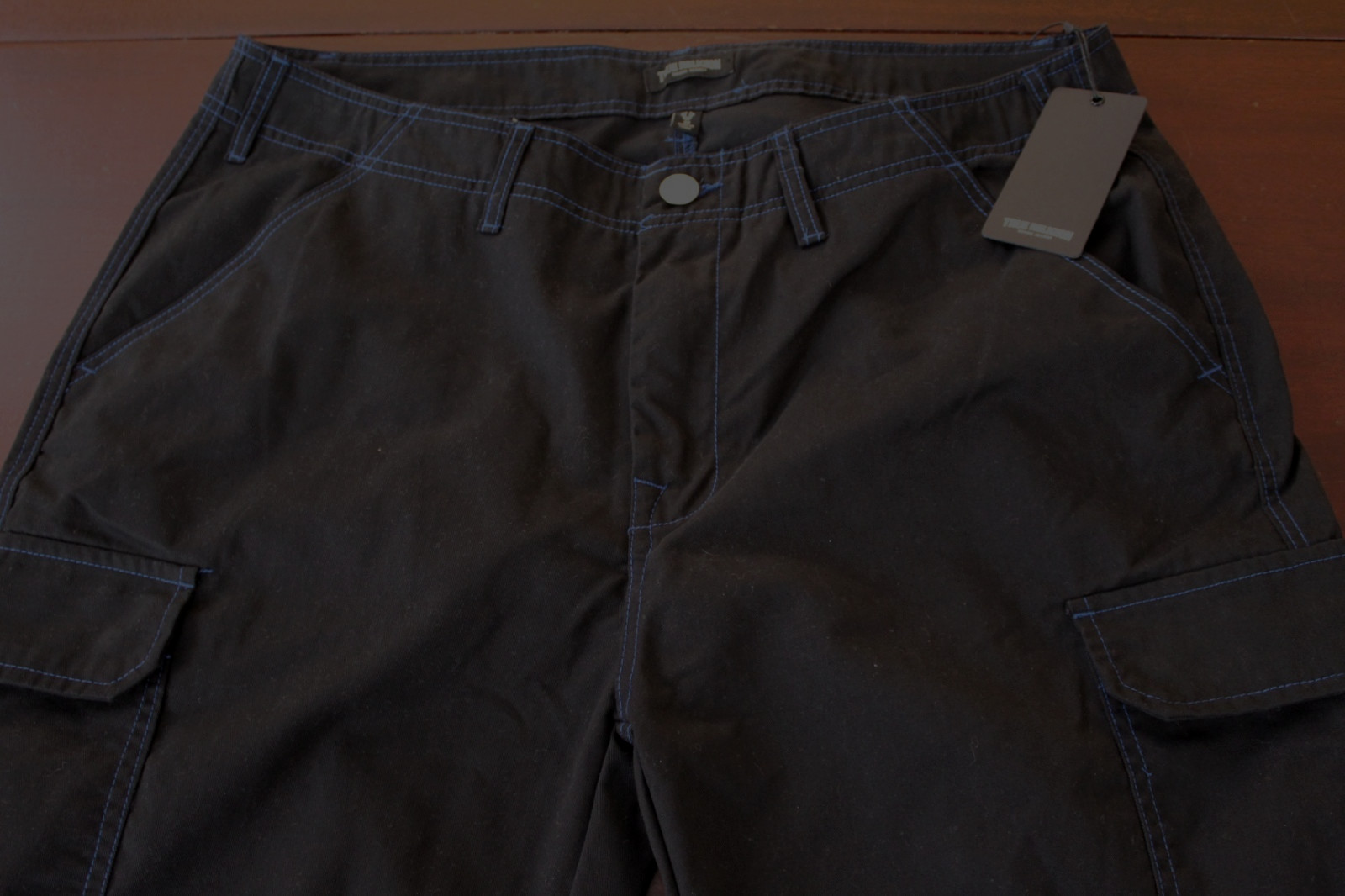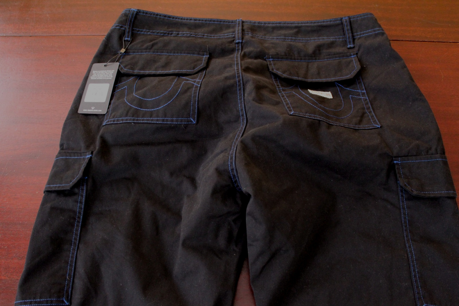 как выглядит mens true religion cargo pants 38x32 nwt 159 jet black фото