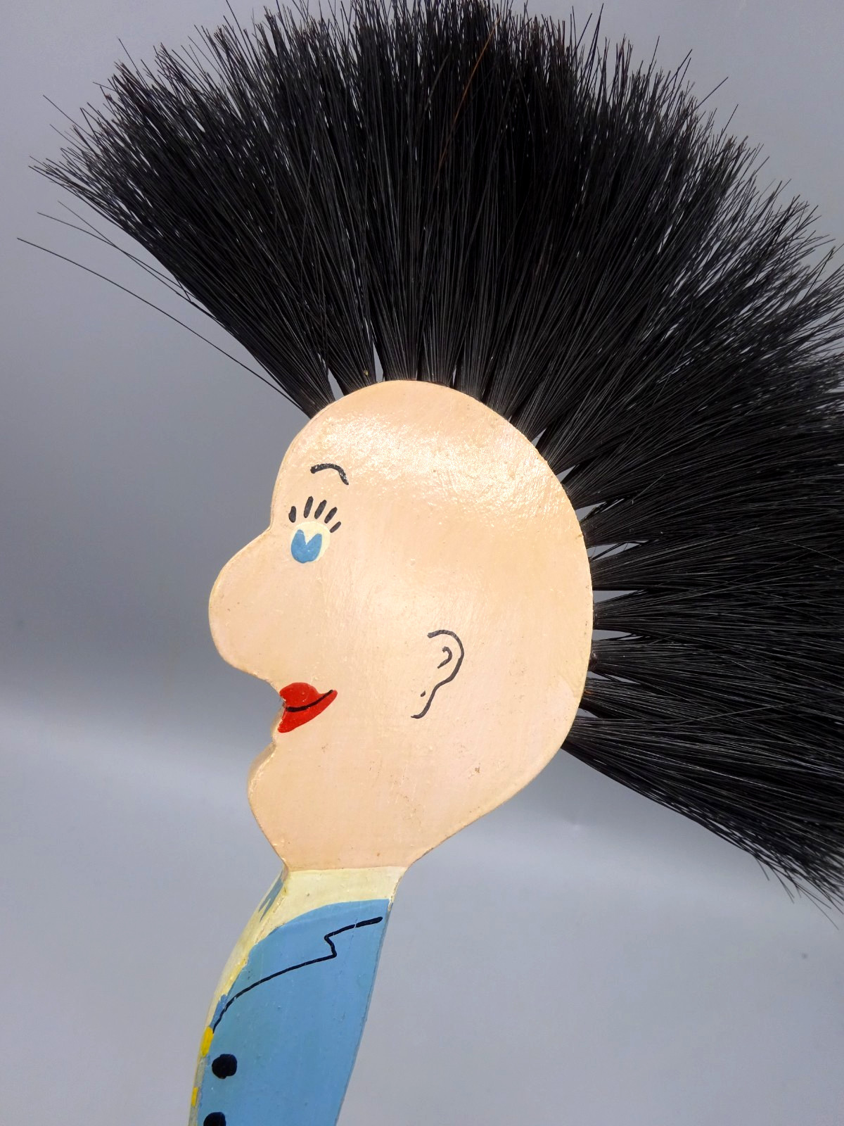 Vintage Hand Painted Novelty Wooden Figural Hand Broom / Dust Brush