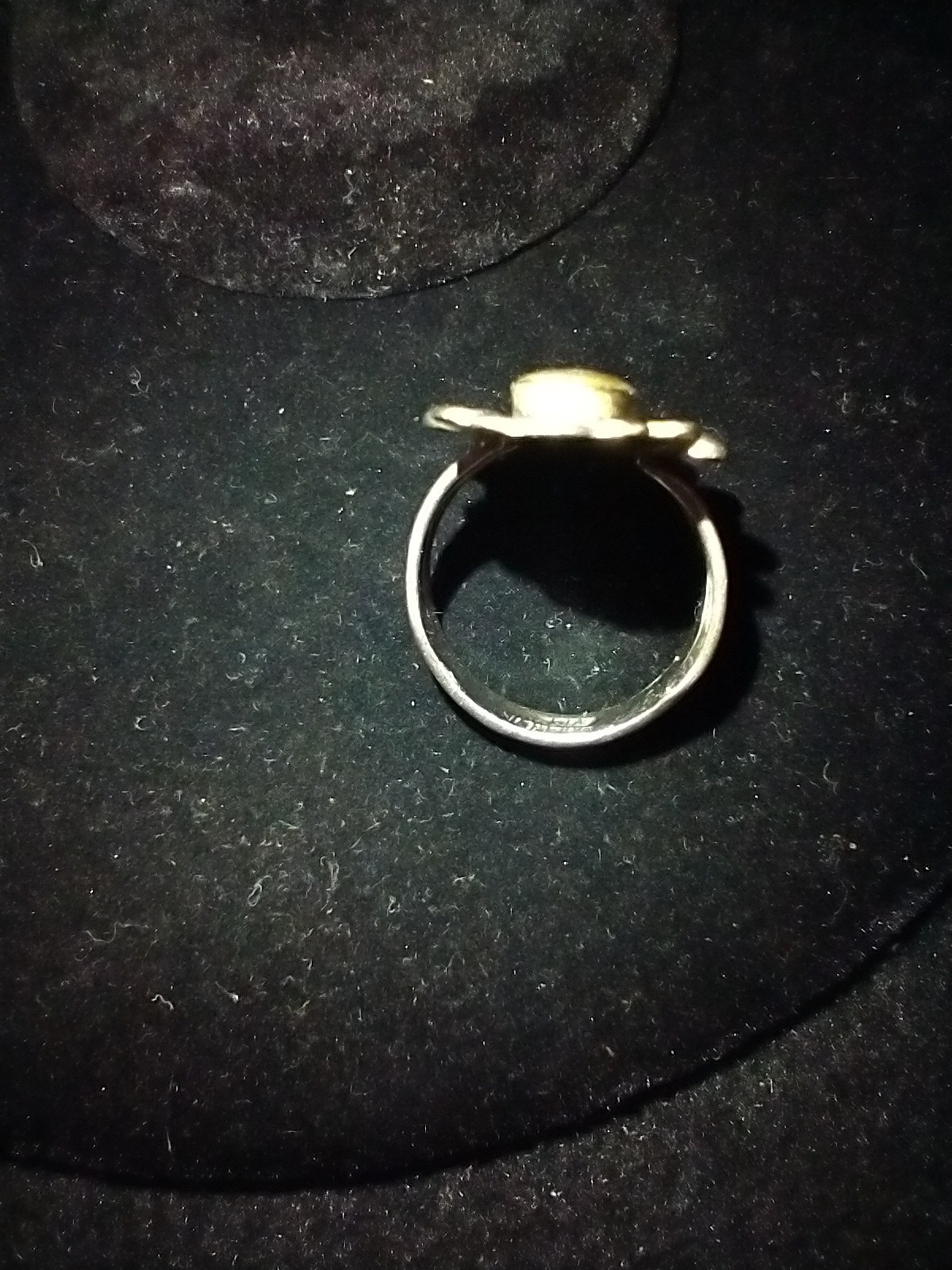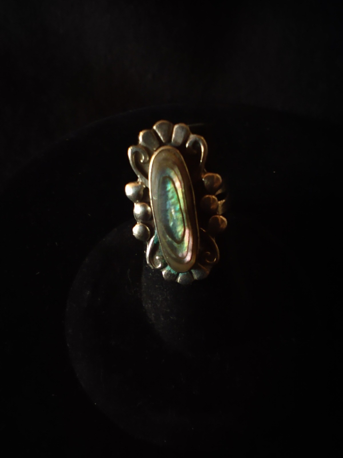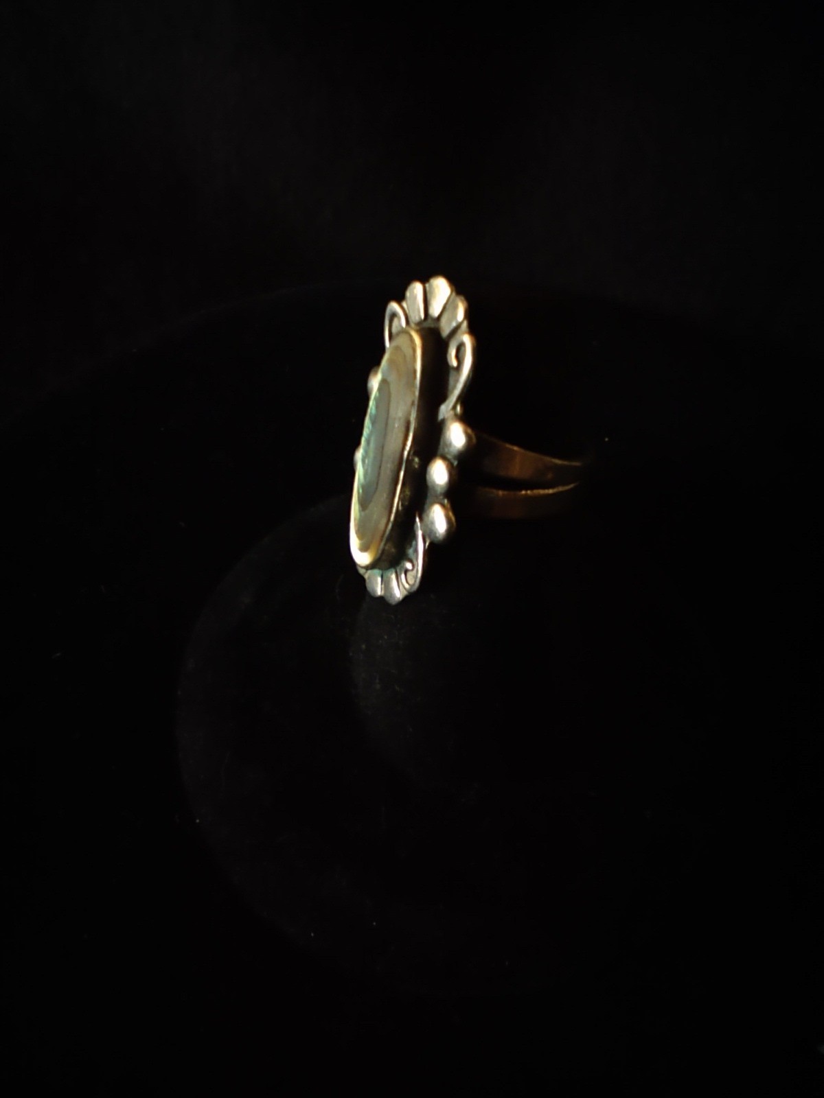 как выглядит Artisan Sterling Silver Oval Abalone Inlay Ring Stamped Sterling Mexico Size 5 фото