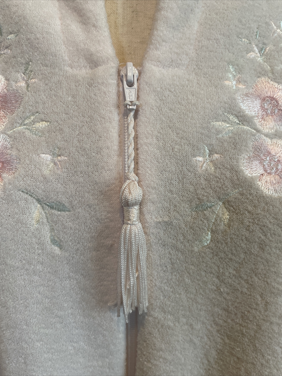 Miss Elaine Large Pink Full Zip Robe House Coat Tassel Embroidered Flowers