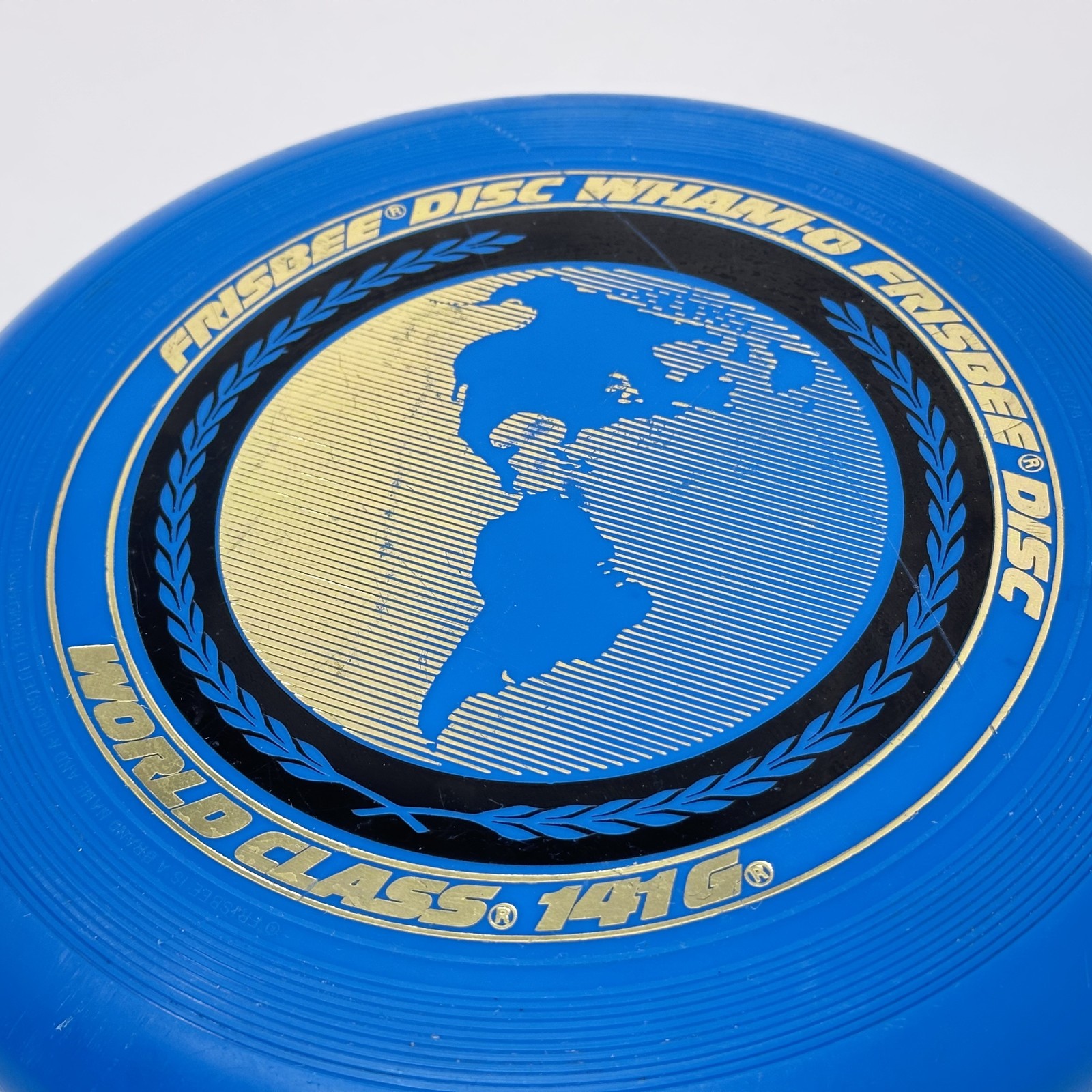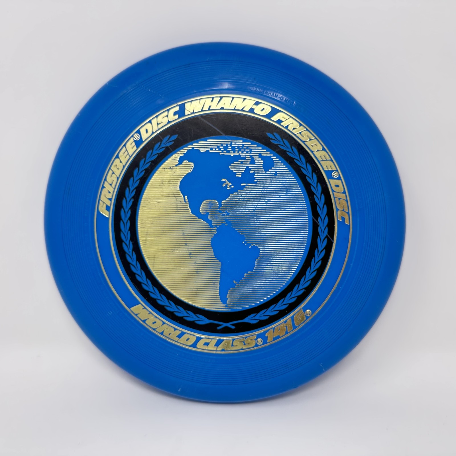 Vintage Wham-O Frisbee Disc World Class 141G Blue Globe Outdoor Flying Toy