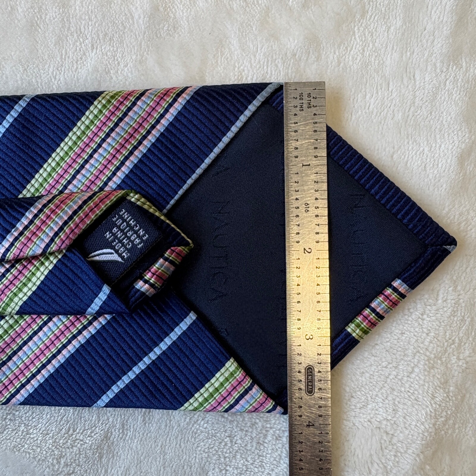 Nautica REPP 59 Necktie 100 Silk Blue Multicolor Striped Designer Tie