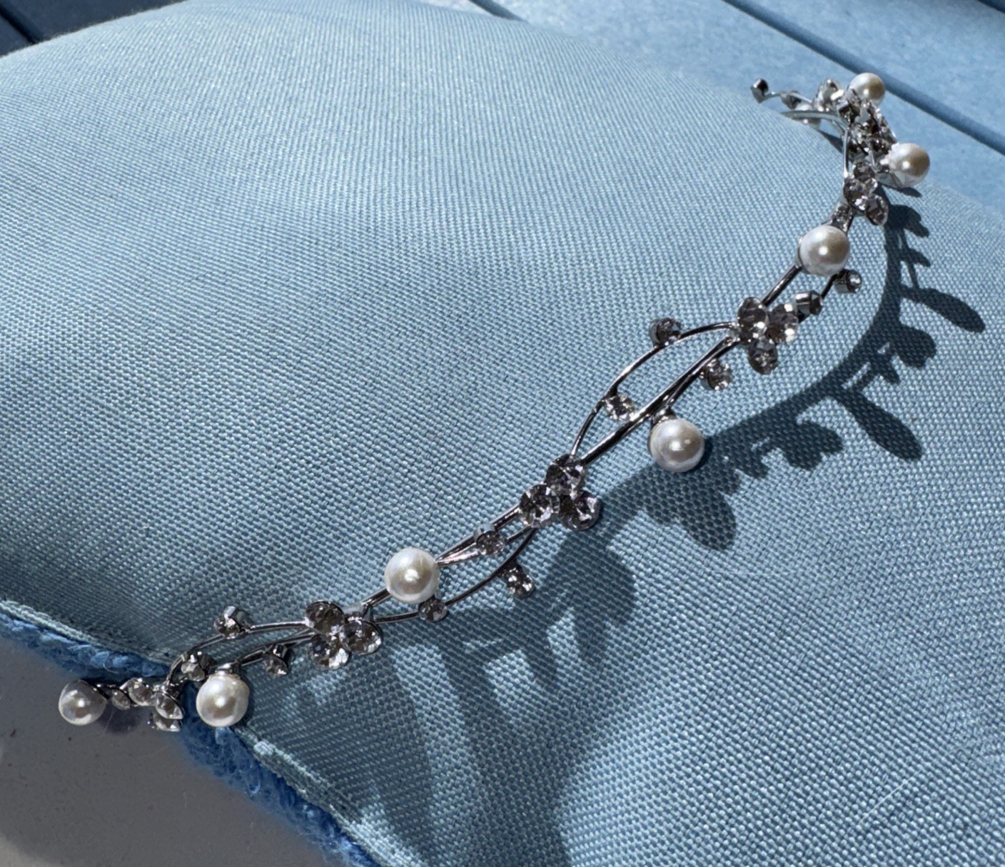 White Gold Tone Rhinestone Pearl Bridal Headband