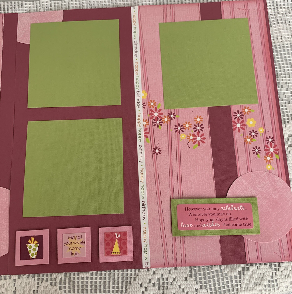 2 - 12X12 pre made Scrapbook Pages Young Girls Birthday Celebration Embellished