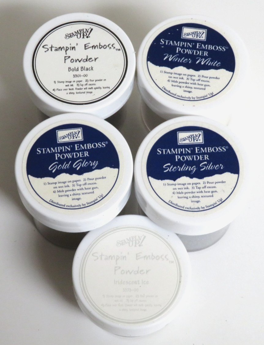 5 Stampin' Up EMBOSSING POWDERS Iridescent Ice Gold Glory Sterling Silver Black