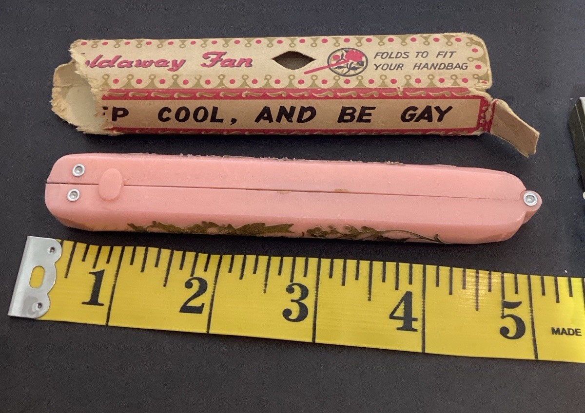 Vtg 1940s Foldaway Fan-Keep Cool and Be Gay- Hong Kong made- Colorful artwork
