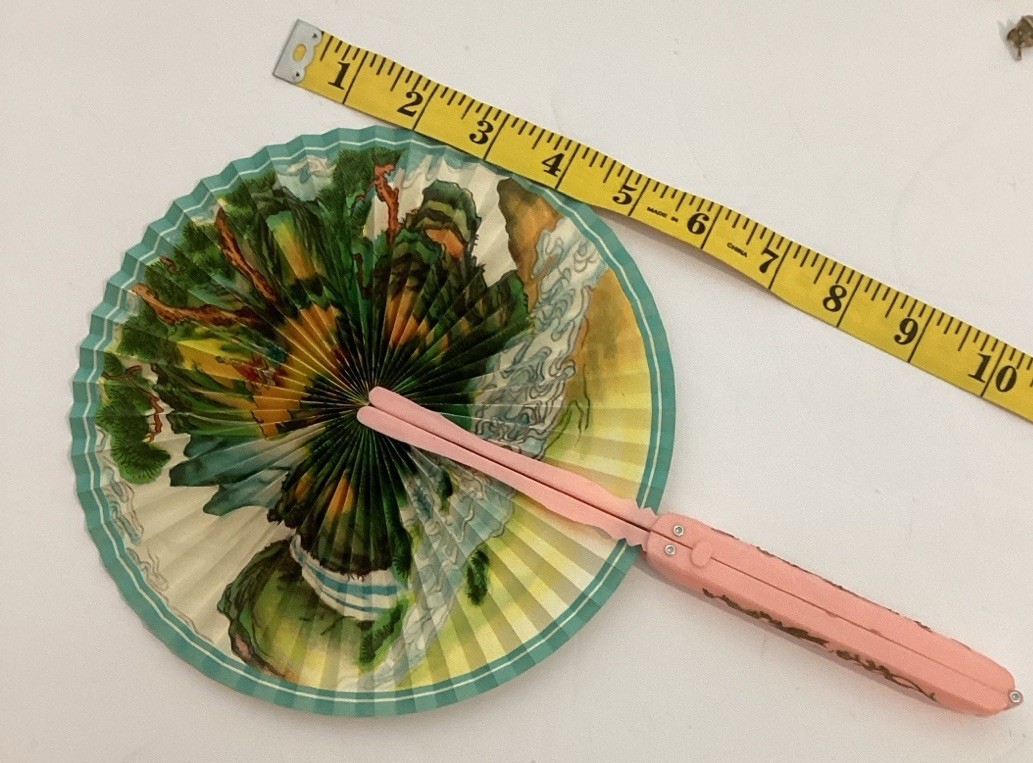 как выглядит Vtg 1940s Foldaway Fan-"Keep Cool and Be Gay"- Hong Kong made- Colorful artwork фото