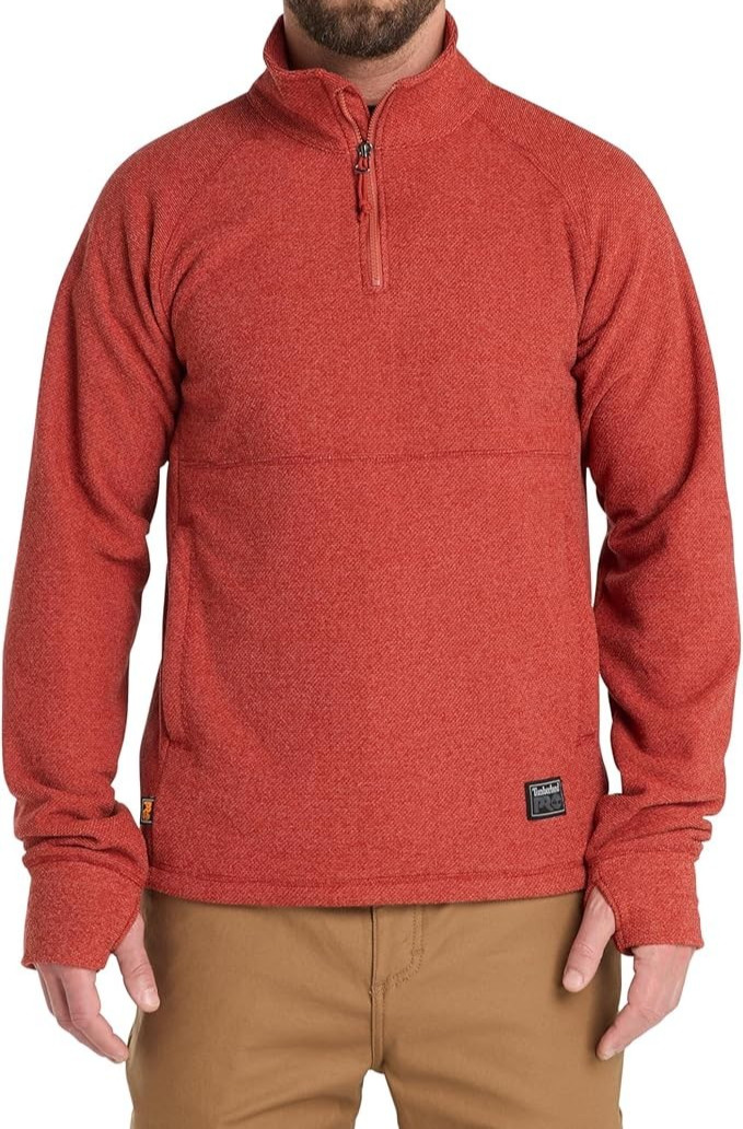 как выглядит Mens Timberland PRO Irvine 1/4-Zip Waffle Fleece Jacket Cinnabar Heather MED фото