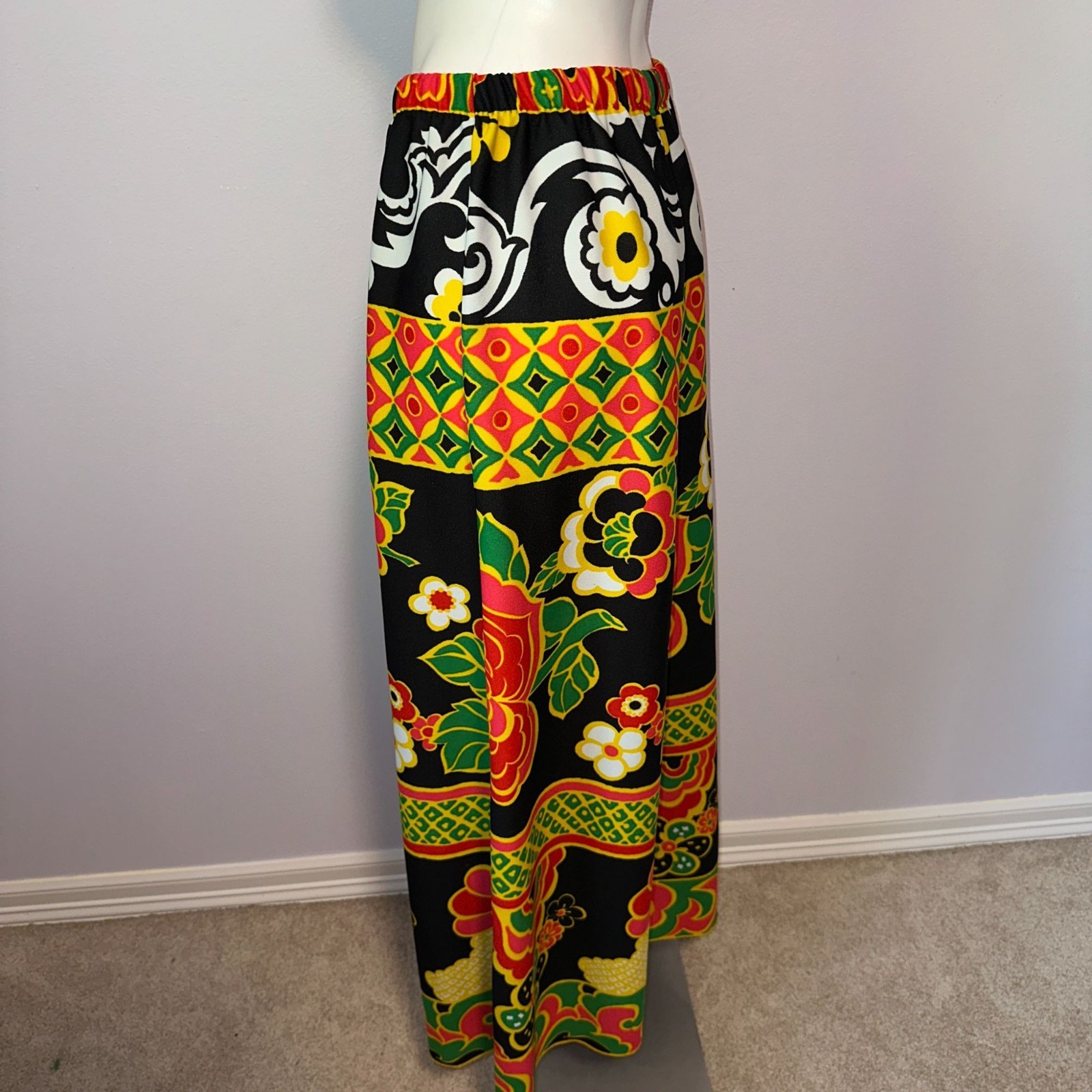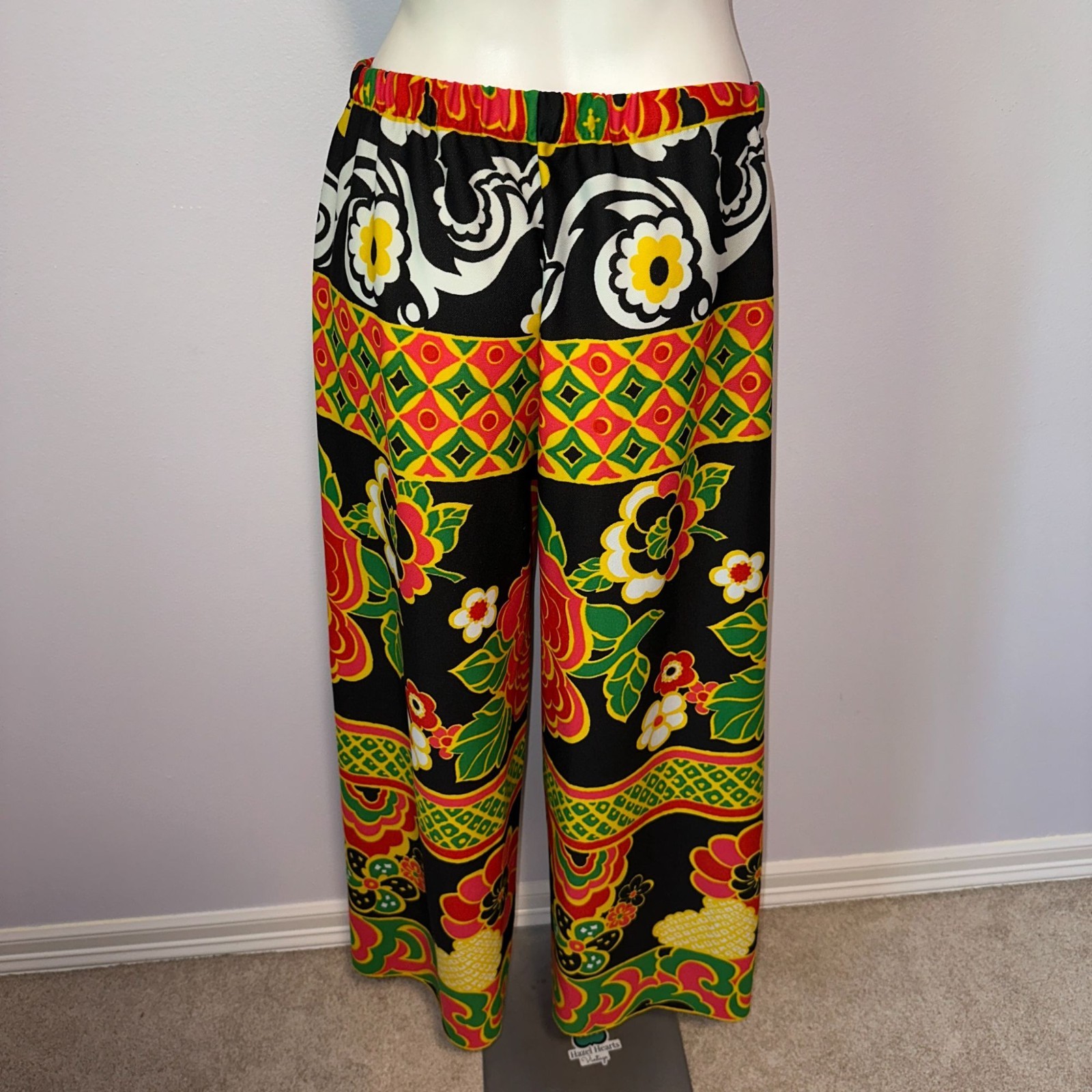 как выглядит Vintage 70s Palazzo Pants Floral Wide Leg Psychedelic Disco L Lounge Hostess фото