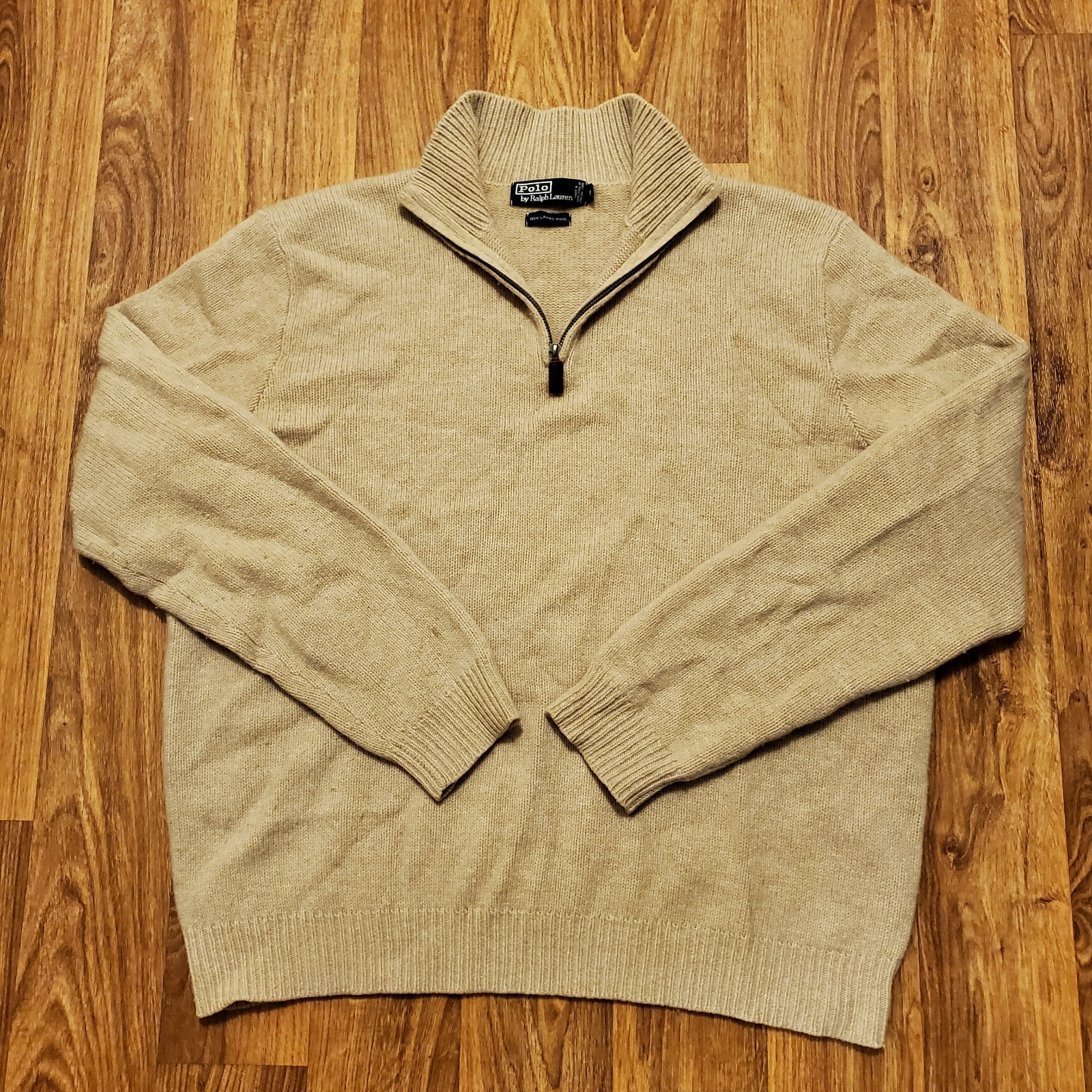 как выглядит Vtg Polo Ralph Lauren Sweater Men XL Beige Half Zip Pullover Lambswool Casual фото