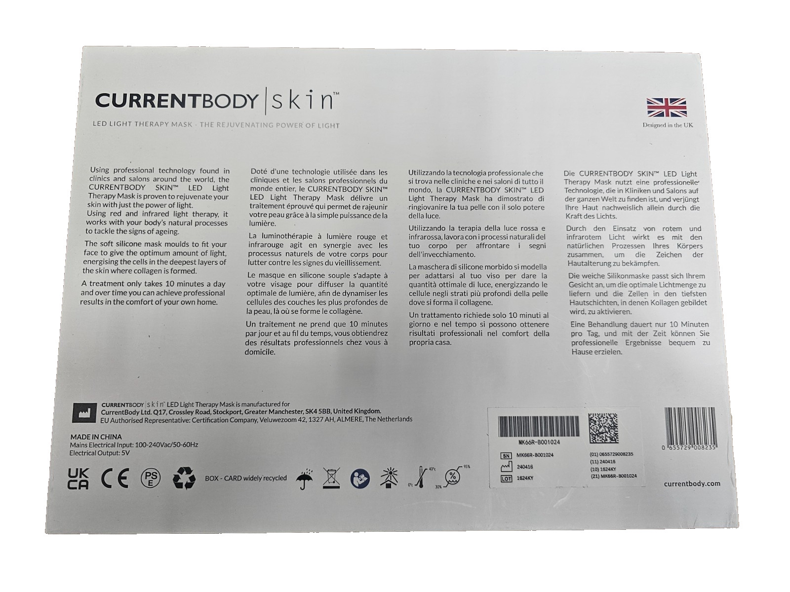 CurrentBody Skin LED Red Light Therapy Face Mask Series 1 Open Box