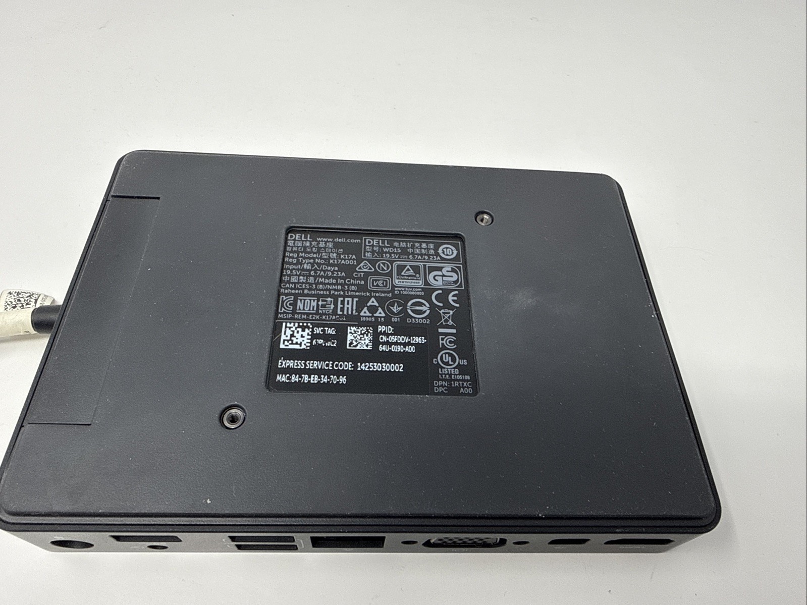 Dell WD15 K17A USB-C Docking Station K17A001 w/ 130W AC Adapter - Tested