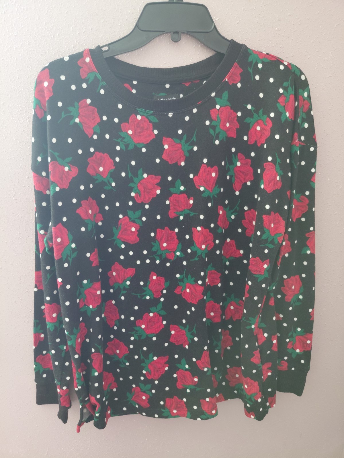 Kate Spade New York 2pc Pajama Set Women s Medium Black Floral Elastic Waist