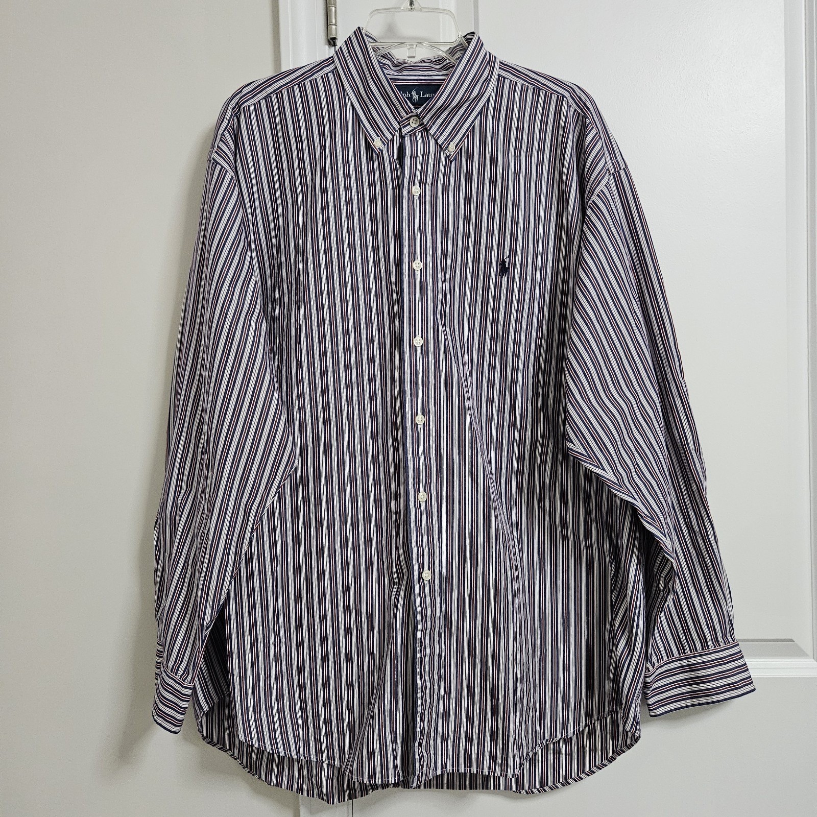 как выглядит Ralph Lauren Mens XL Blake Button Down Shirt Long Sleeve Blue Striped Pony EUC фото