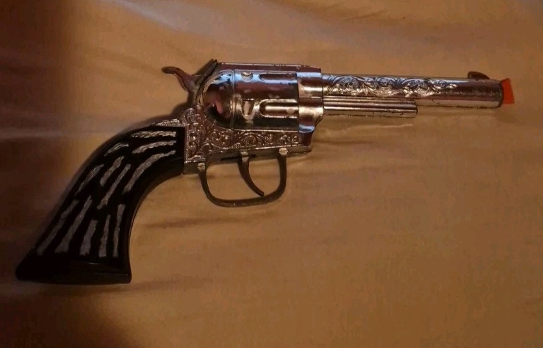 Vintage Pony Boy Cast Metal Toy Cap Gun Revolver w/ Ornate Engraving