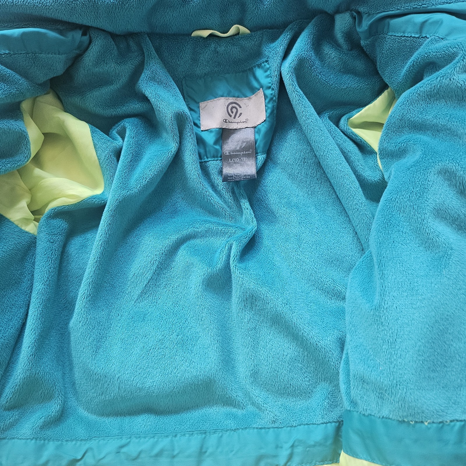 Champion Unisex Kids Warm Puffer Jacket Blue/Green Hooded Zip L 10-12 Winter