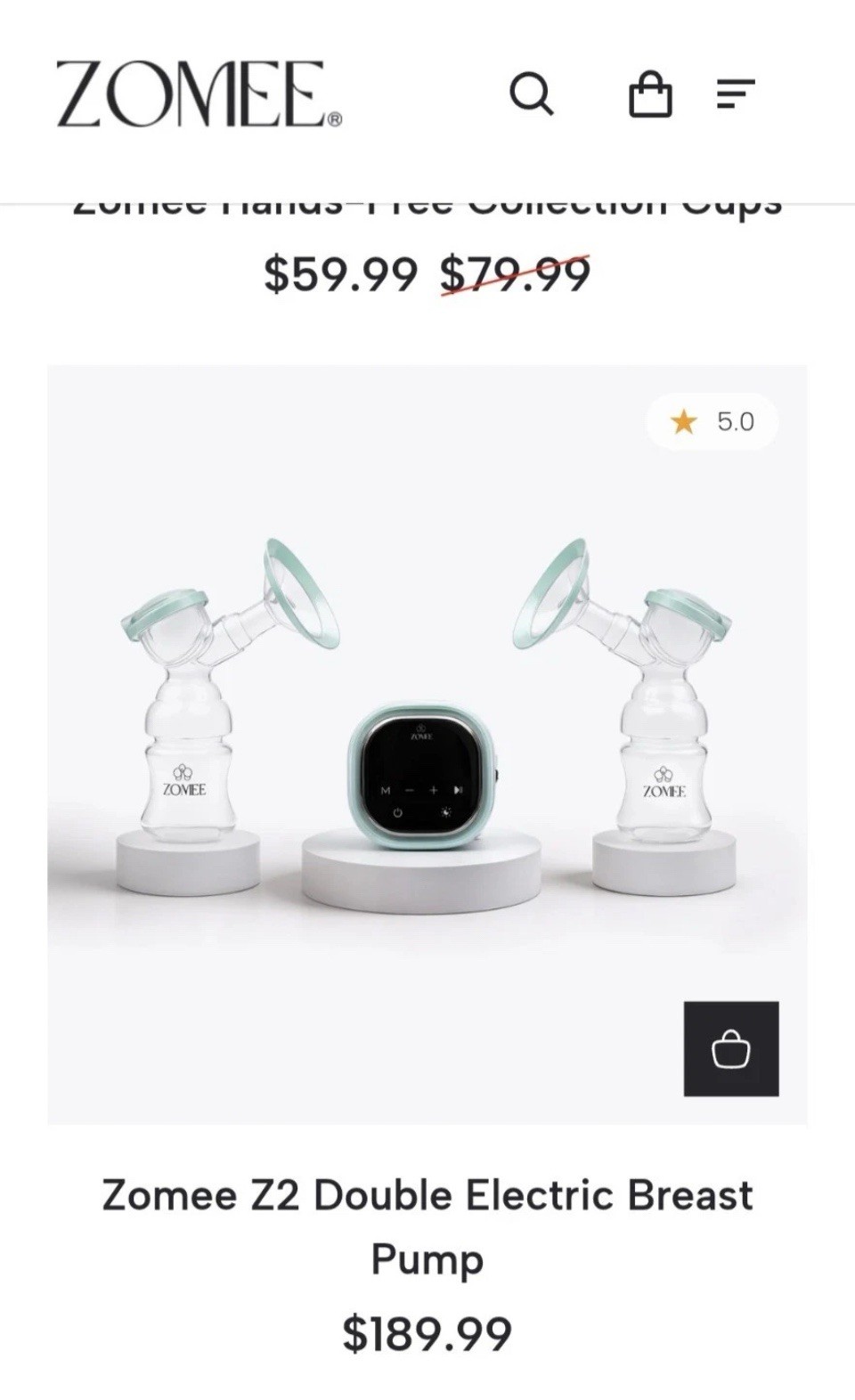 NEW Zomee Z2 Double Electric Breast Pump/ Portable/ Rechargeable/ Lightweight