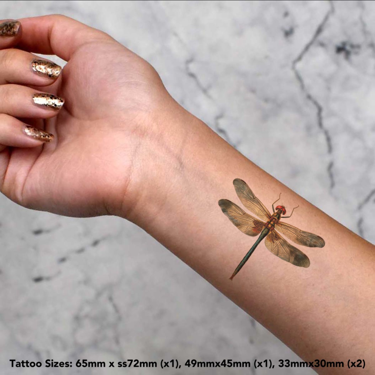 4 x 'Open Winged Dragonfly' Temporary Tattoos / Transfers TO00077938