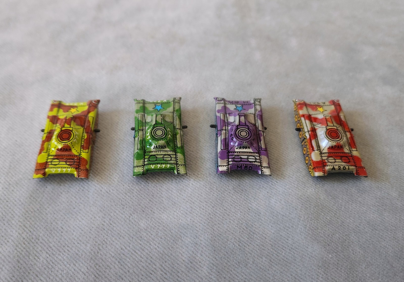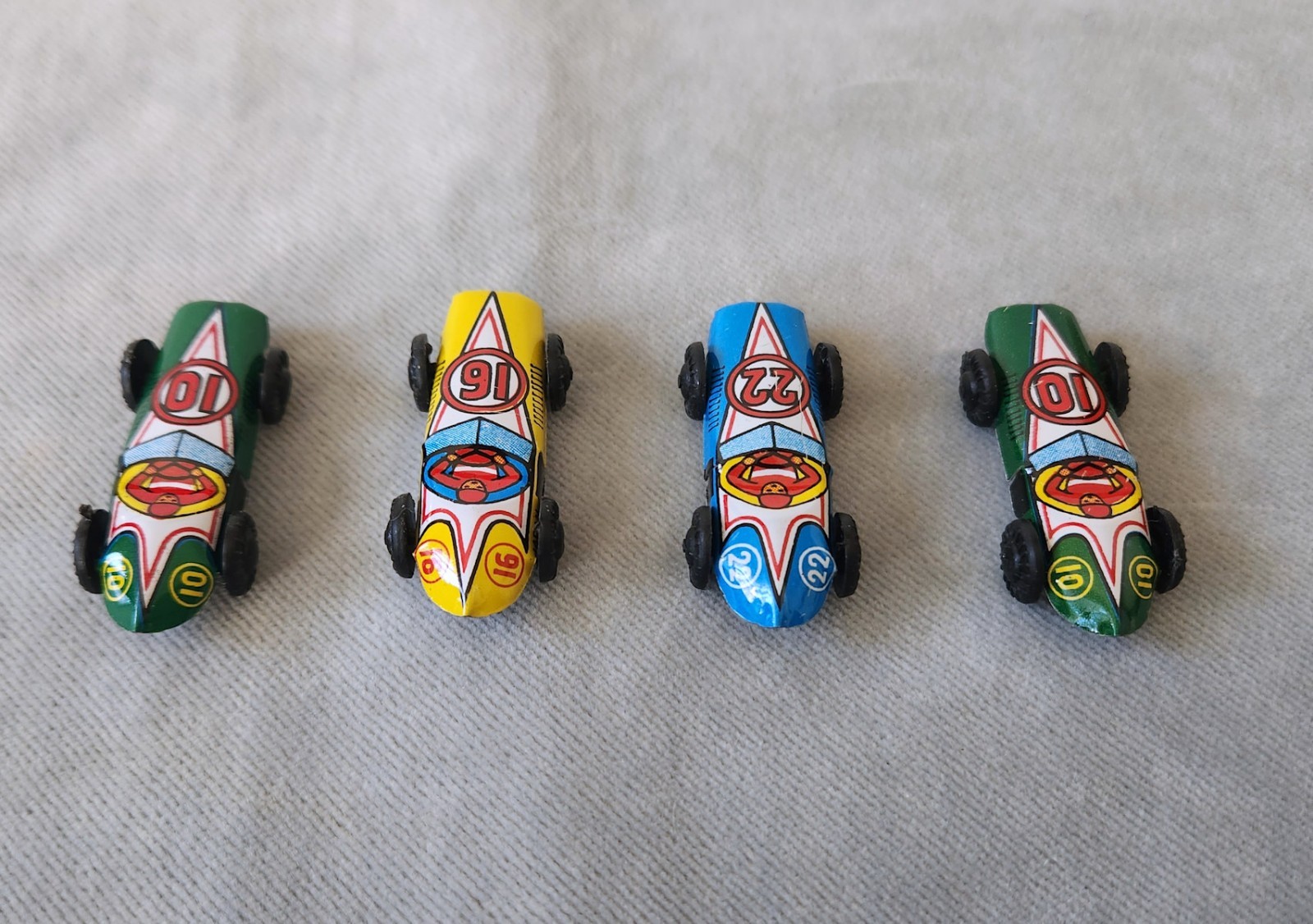 12 Vintage Tiny Tin Litho Cars Tanks Police Toyota Gumball Cracker Jack Japan