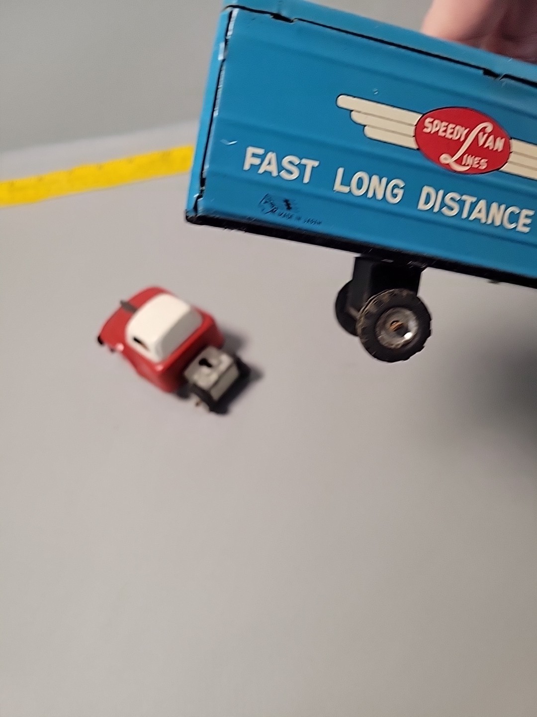как выглядит Ichimura Tin Litho Friction Speedy Van Lines Trailer Truck 9.5" Japan Vintage фото