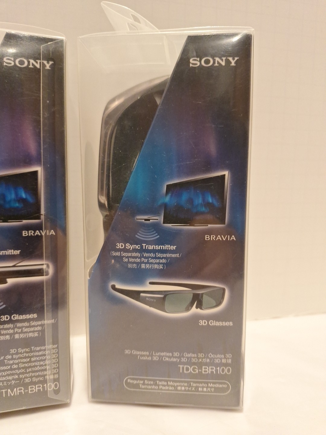 как выглядит SONY 3D Glasses TDG-BR100 2 Pairs 3D Sync Transmitter TMR-BR100 New Sealed фото