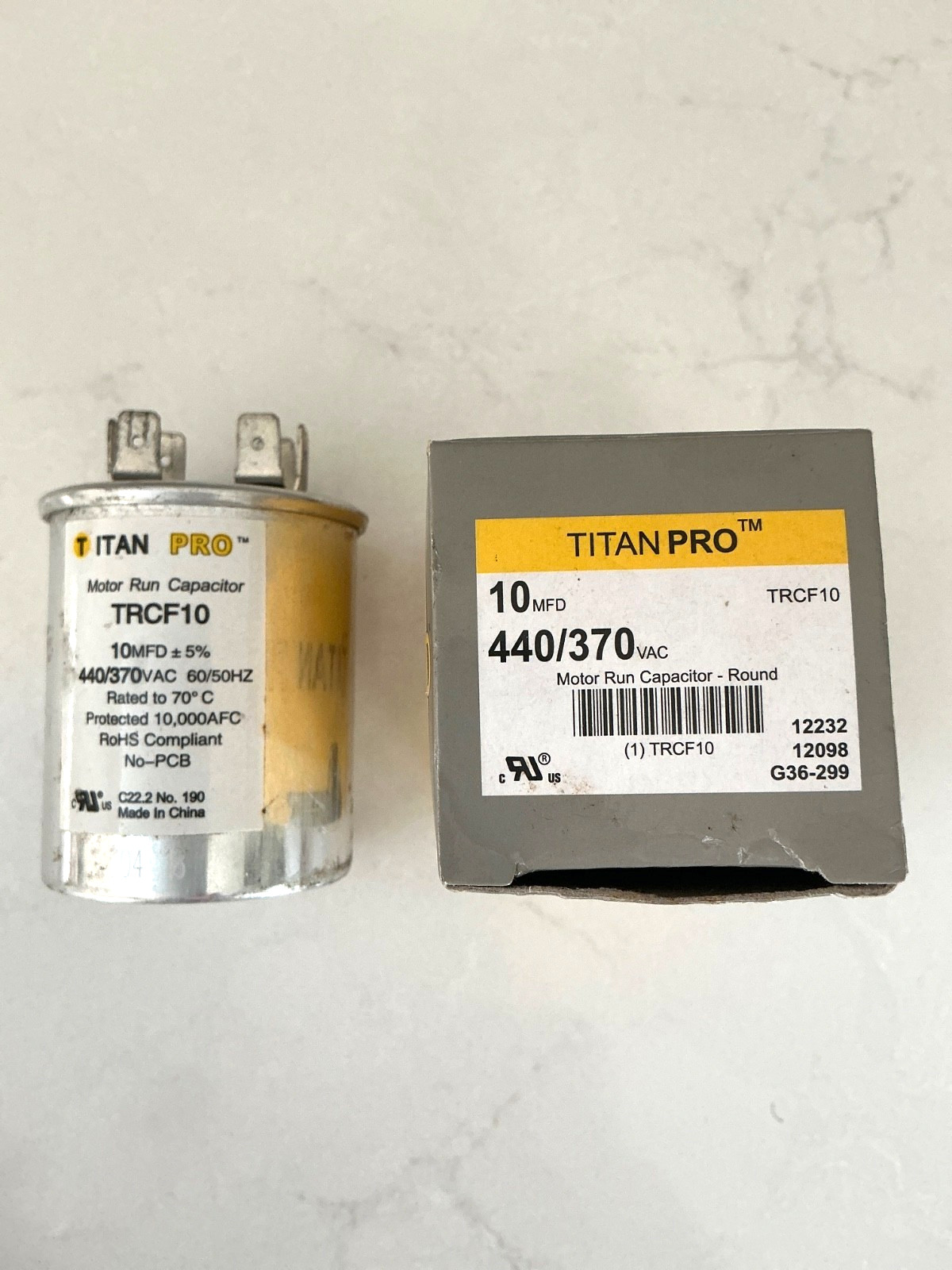 • Titan Pro TRCF10 Motor Run Capacitor 10 MFD 440/370 VAC HVAC PROFESSIONAL GRADE