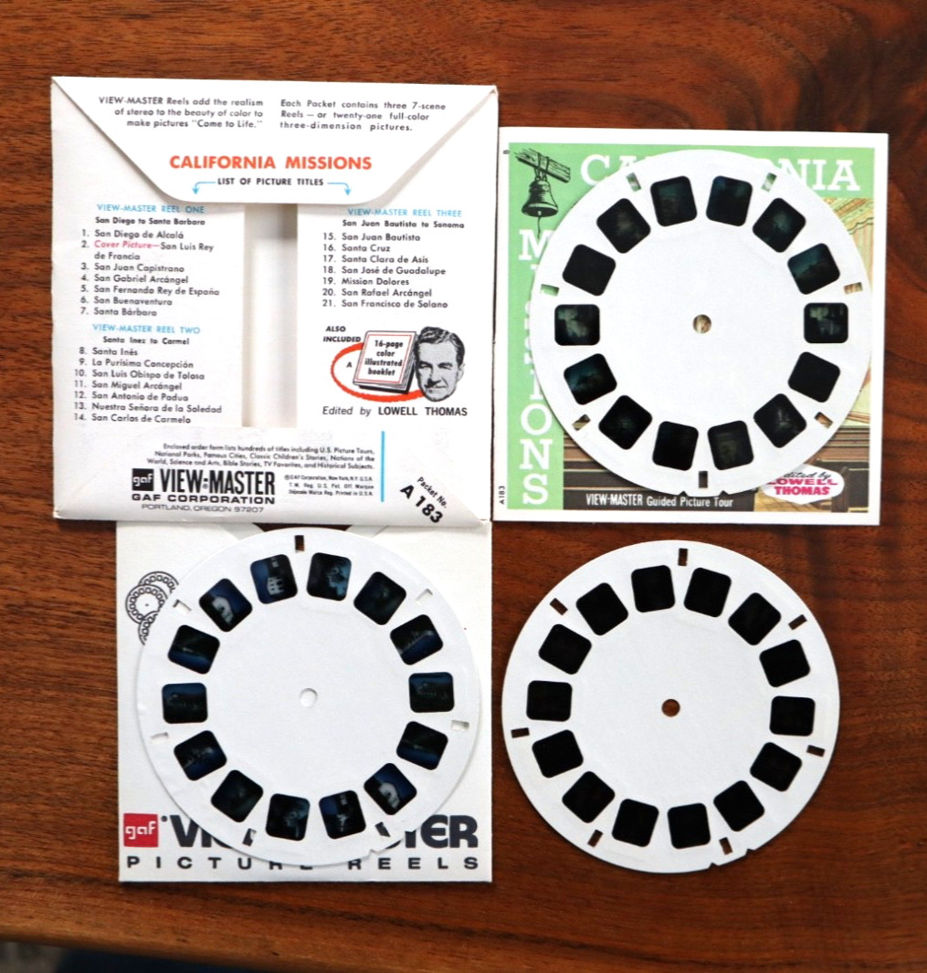 • VIEW-MASTER CALIFORNIA MISSIONS, A183, COMPLETE EXCELLENT CONDITION, 3 Reel Set