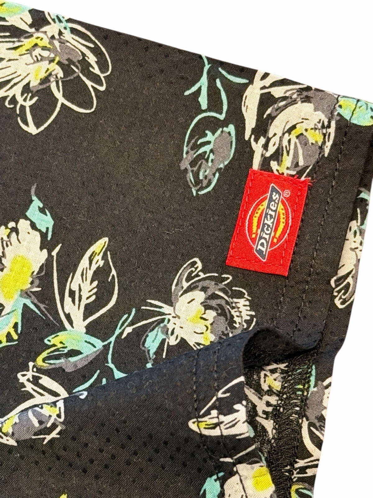 Dickies women's V-neck scrub top black white floral print, Sz M style DK705 ANBL