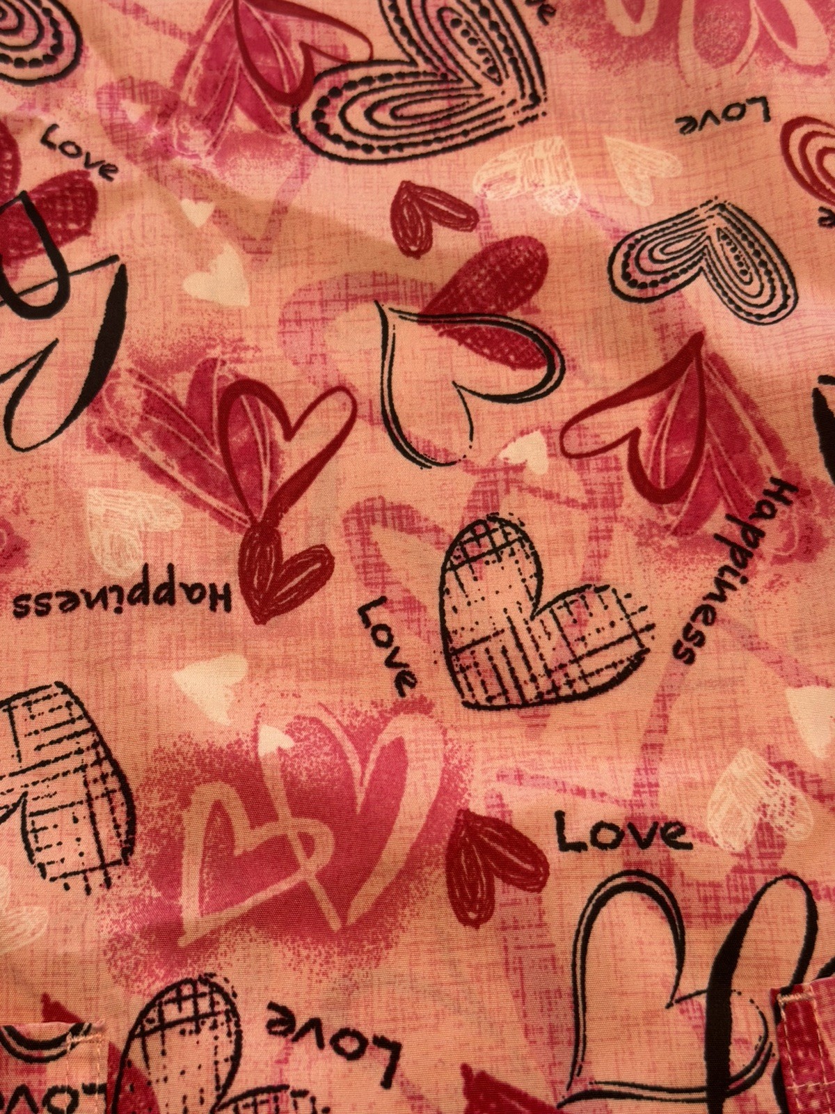 koi Basics Love and Happiness Hearts Women's 2-Pocket STRETCH V-Neck Print topXL
