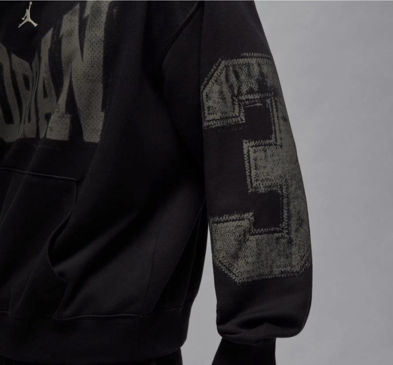 как выглядит Nike Jordan Brooklyn Mens Collegiate Pullover Hoodie Black Sail HV0093-010 фото
